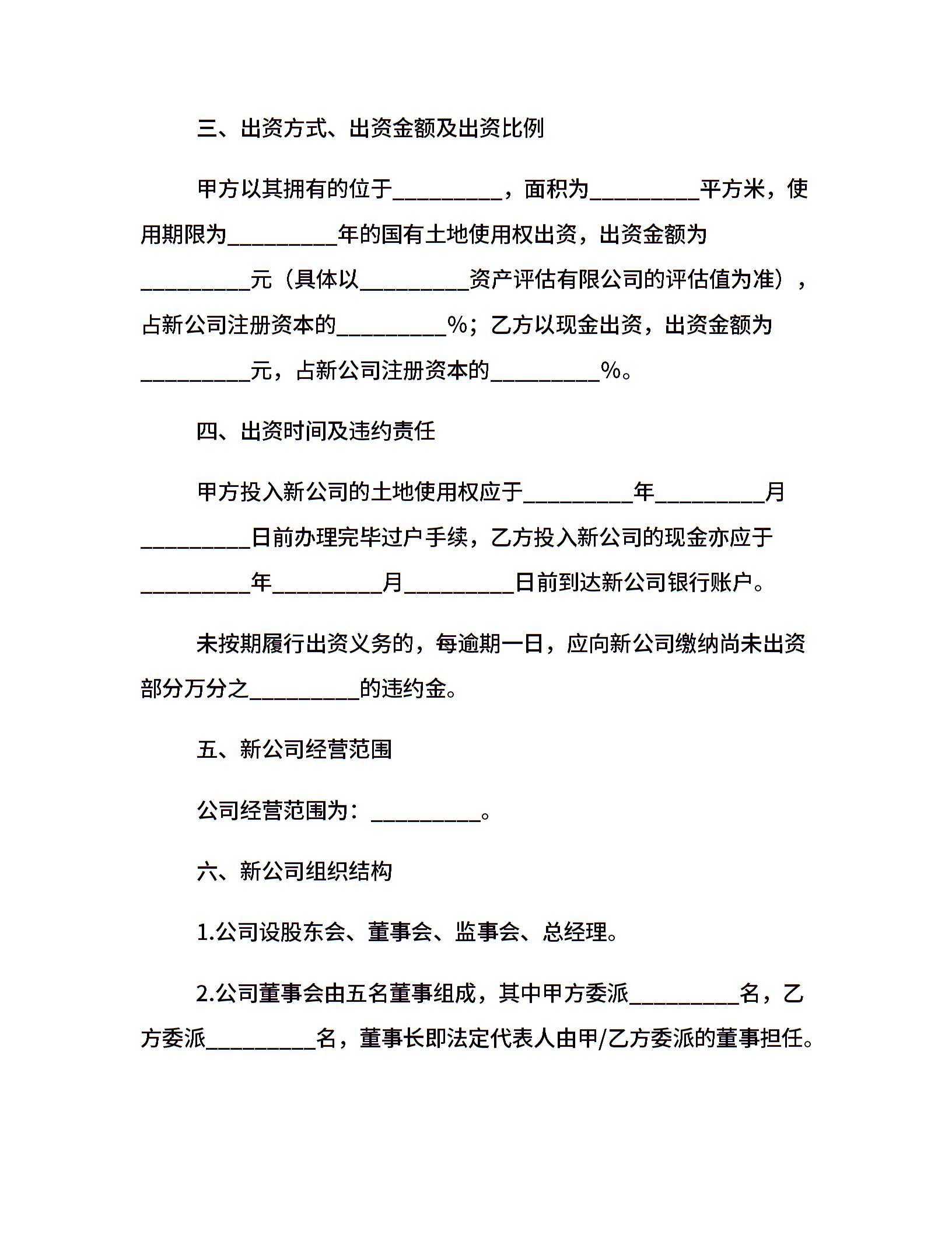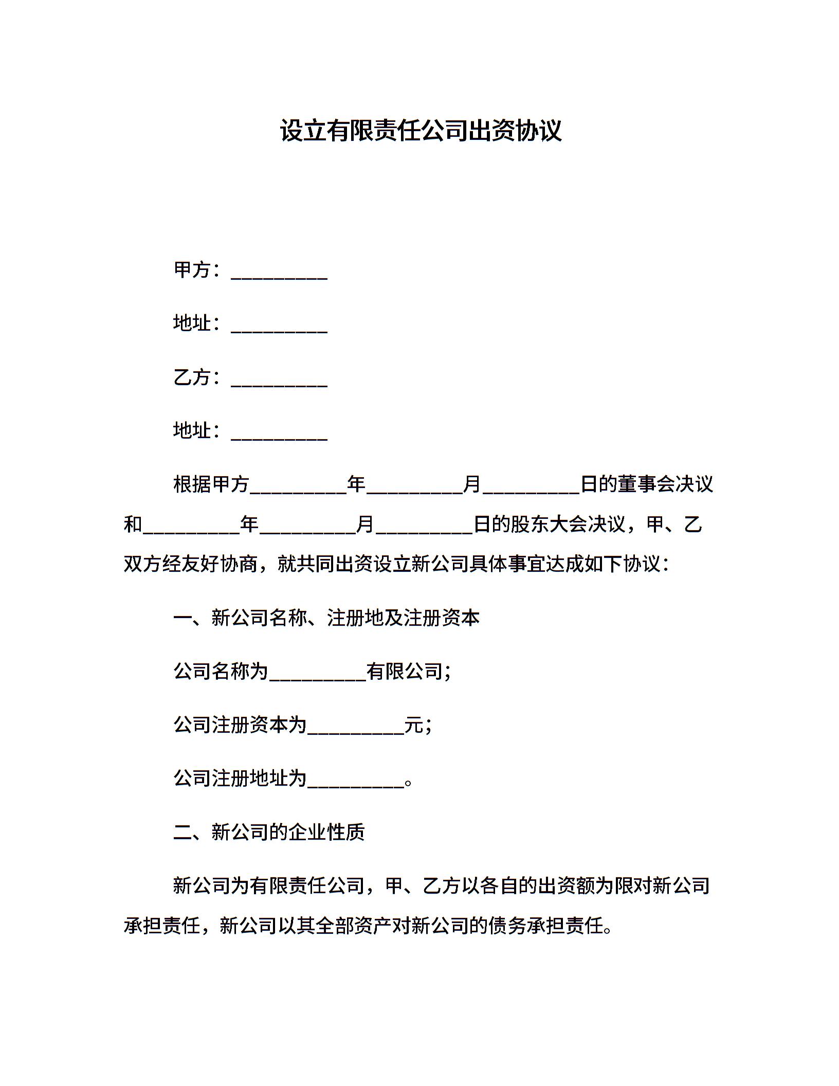 设立有限责任公司出资协议