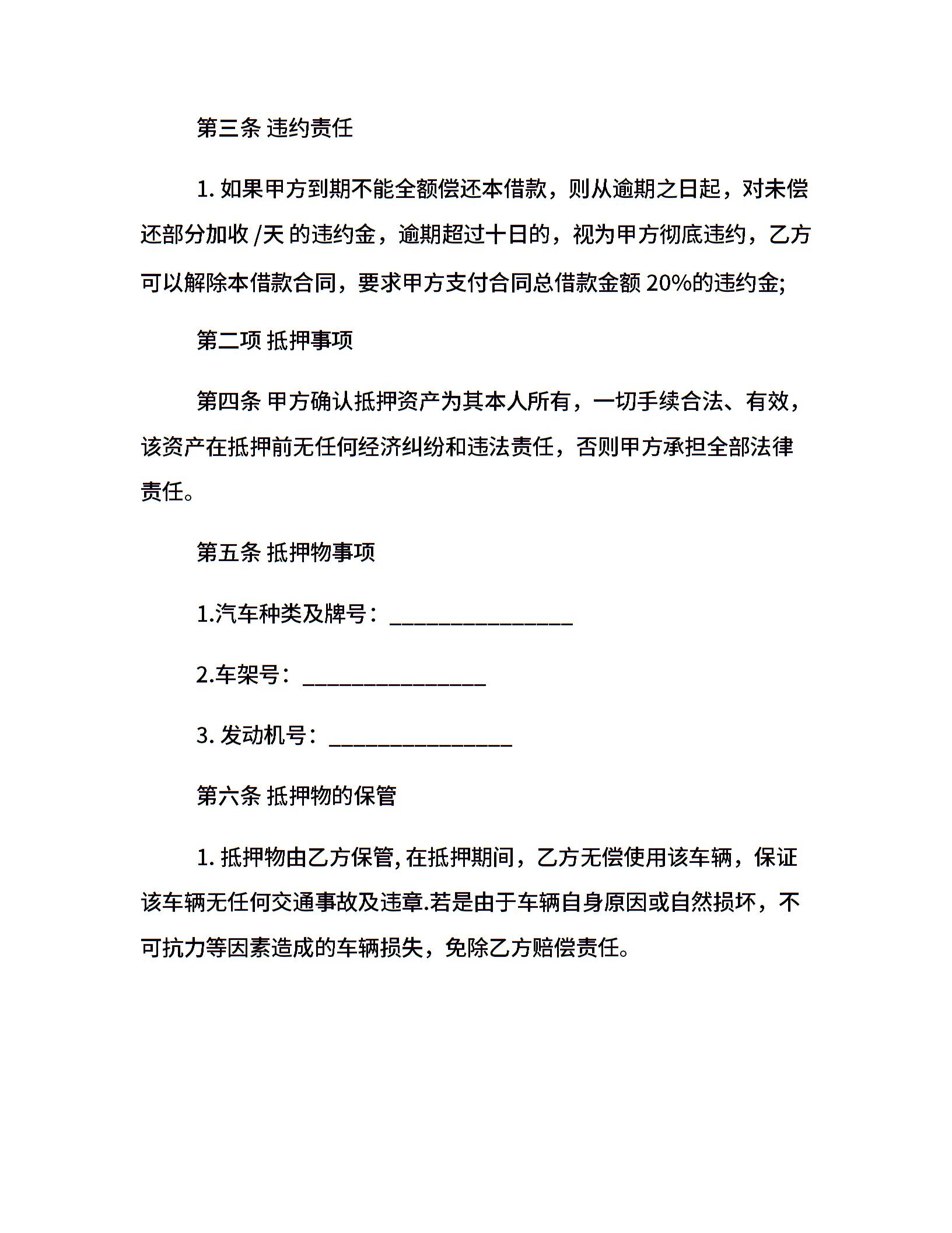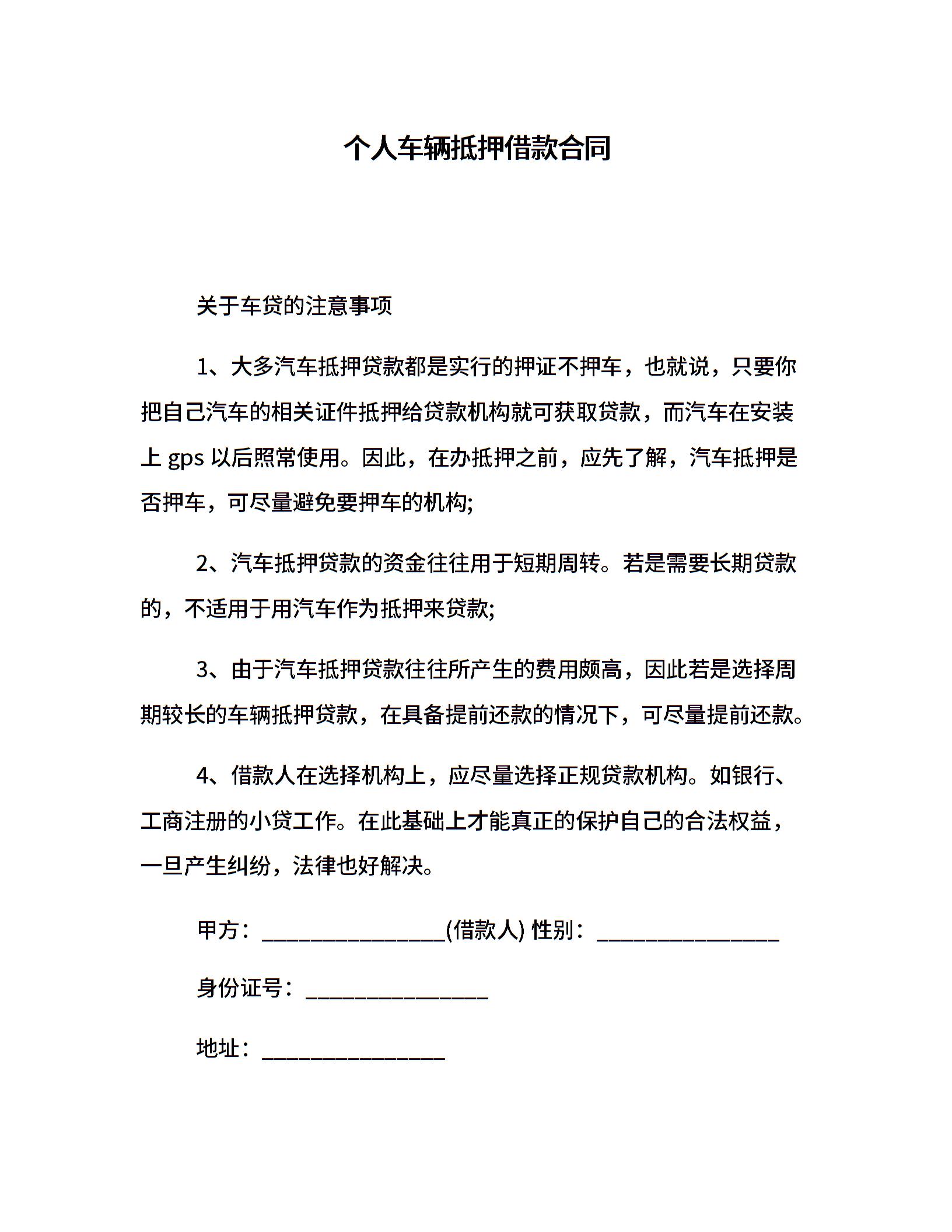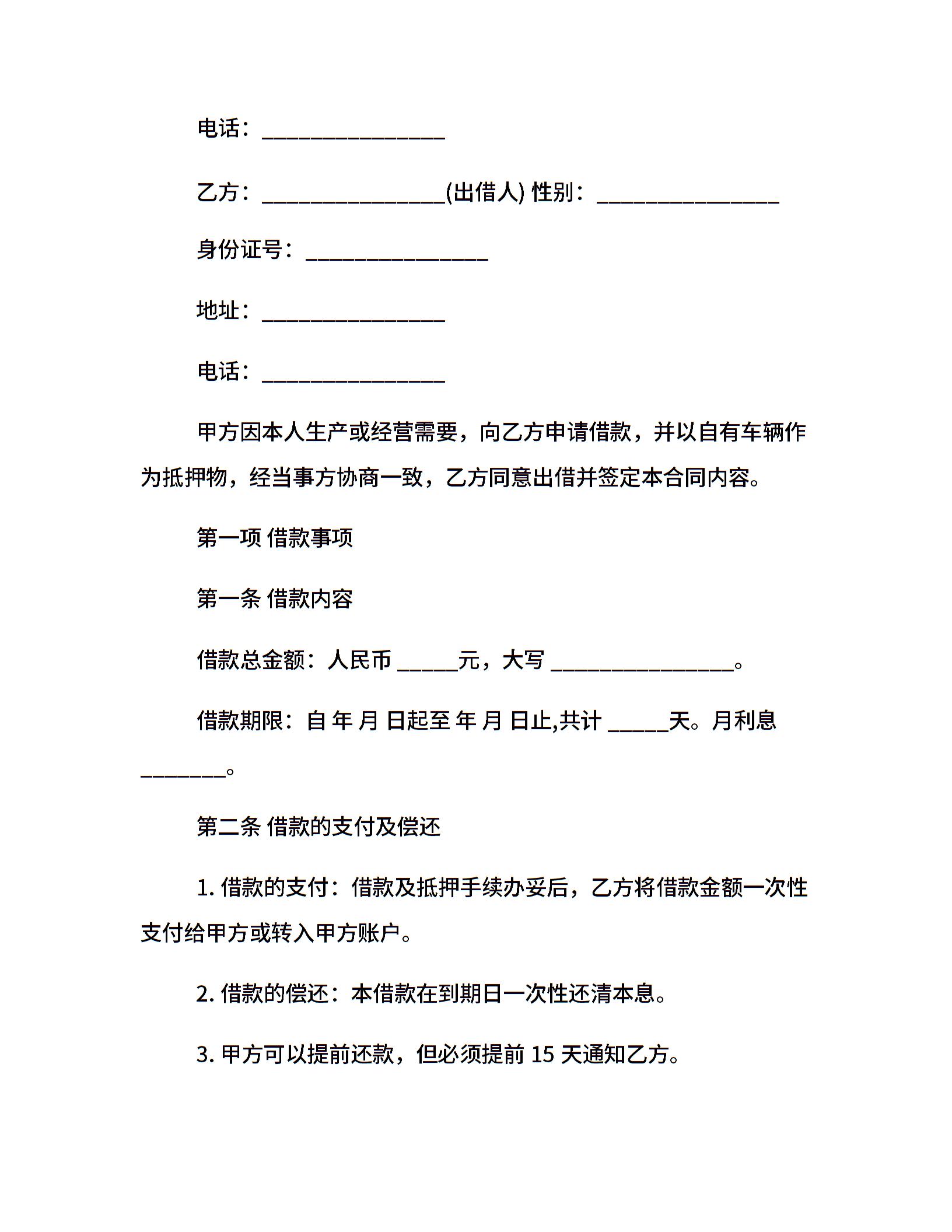 个人车辆抵押借款合同