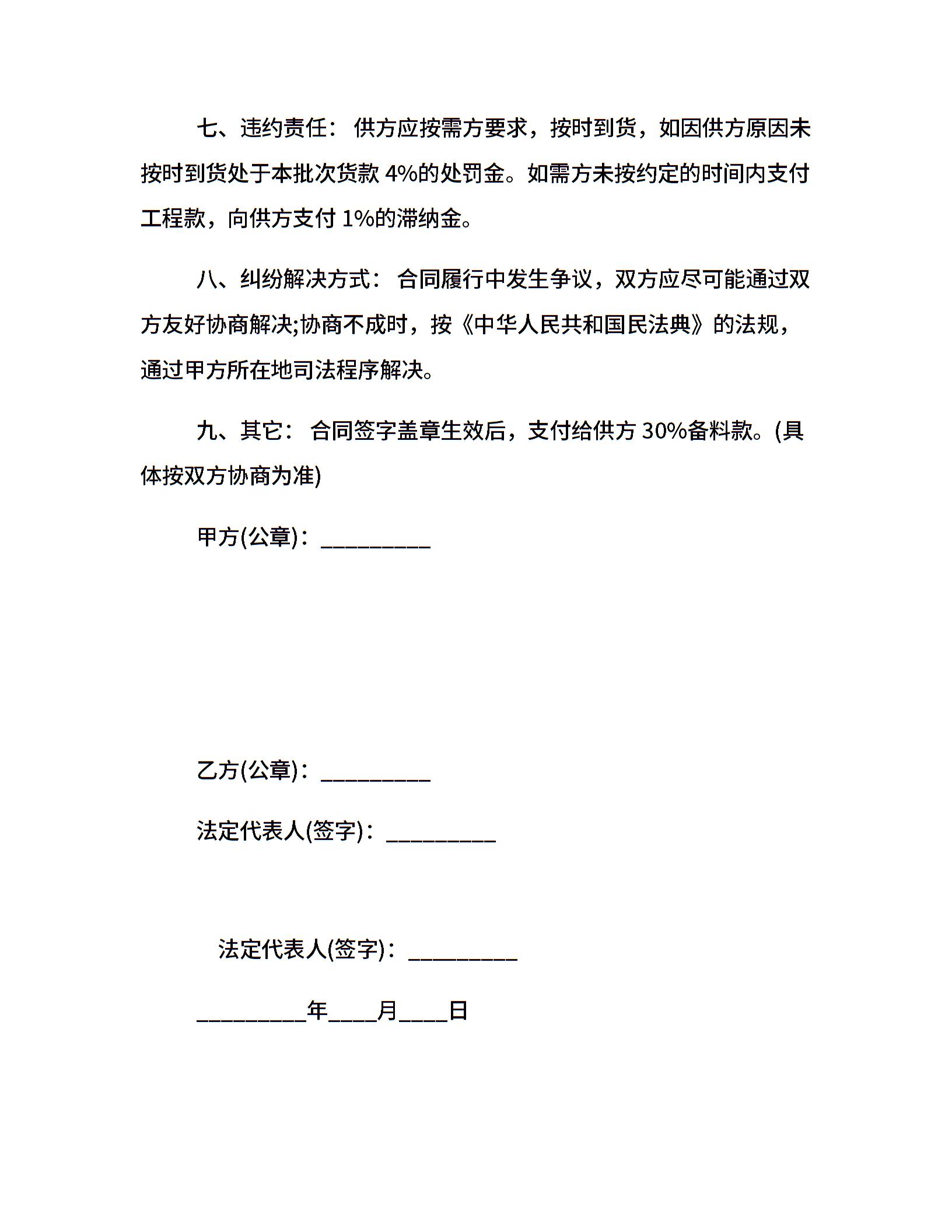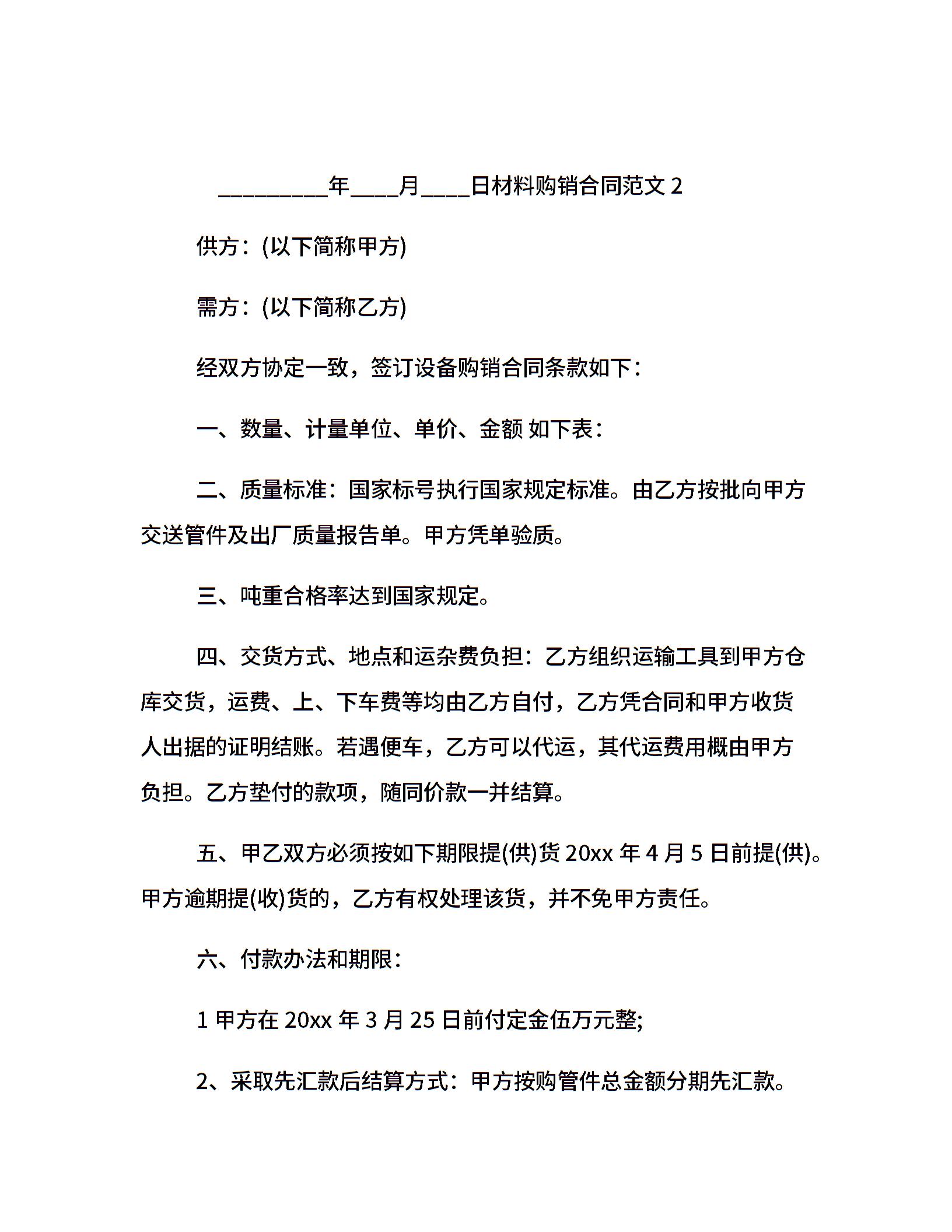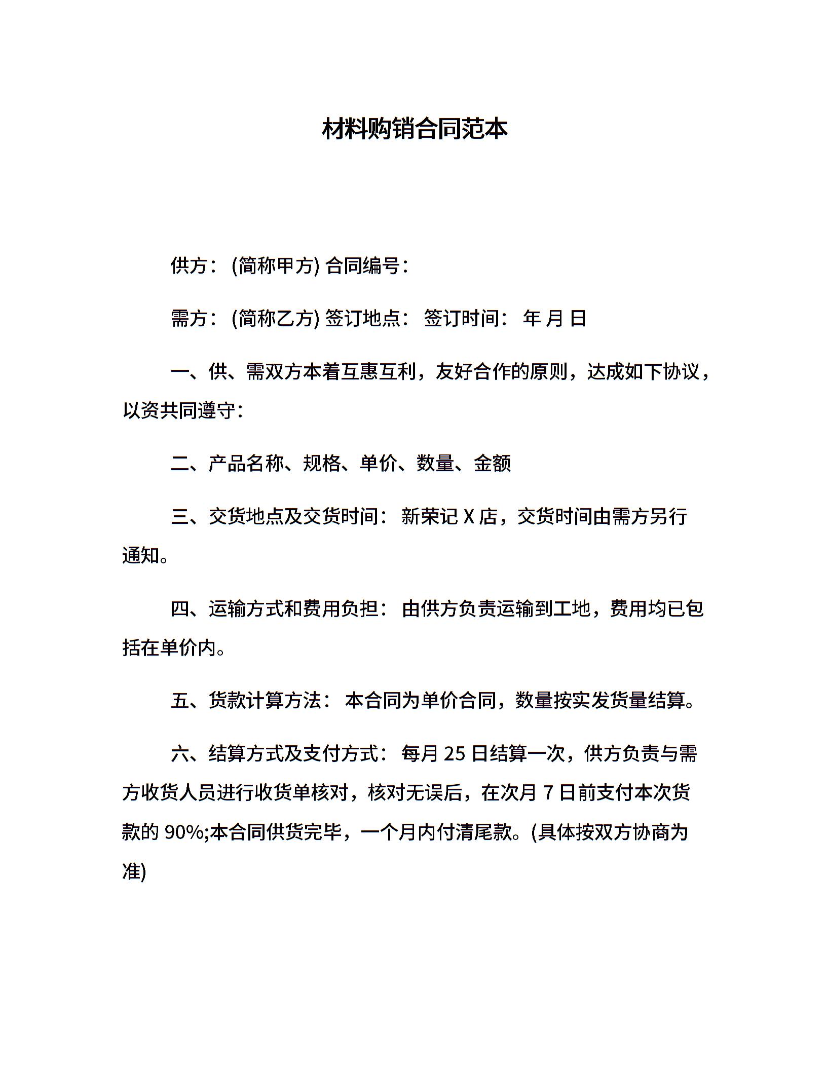材料购销合同范本