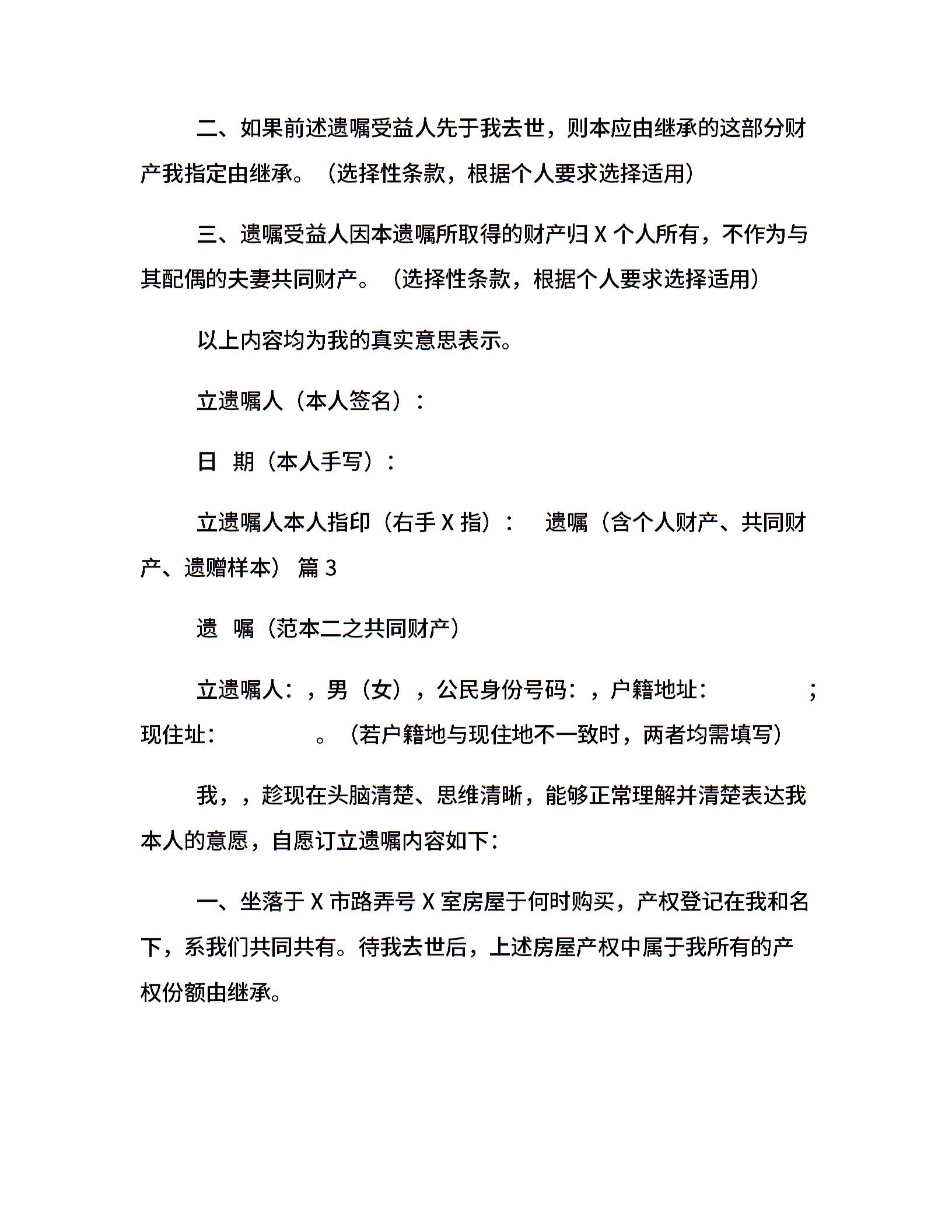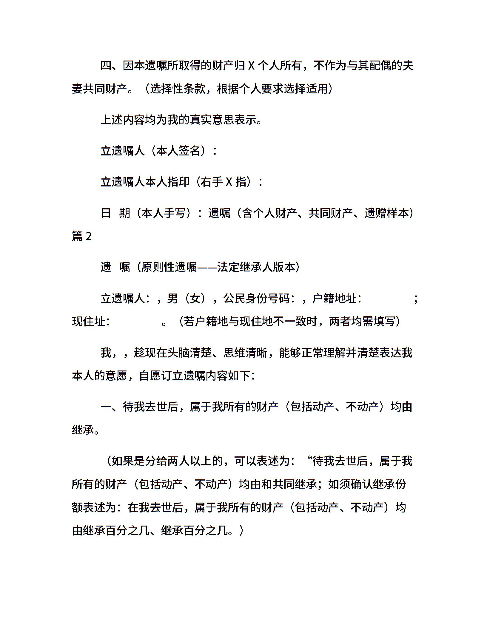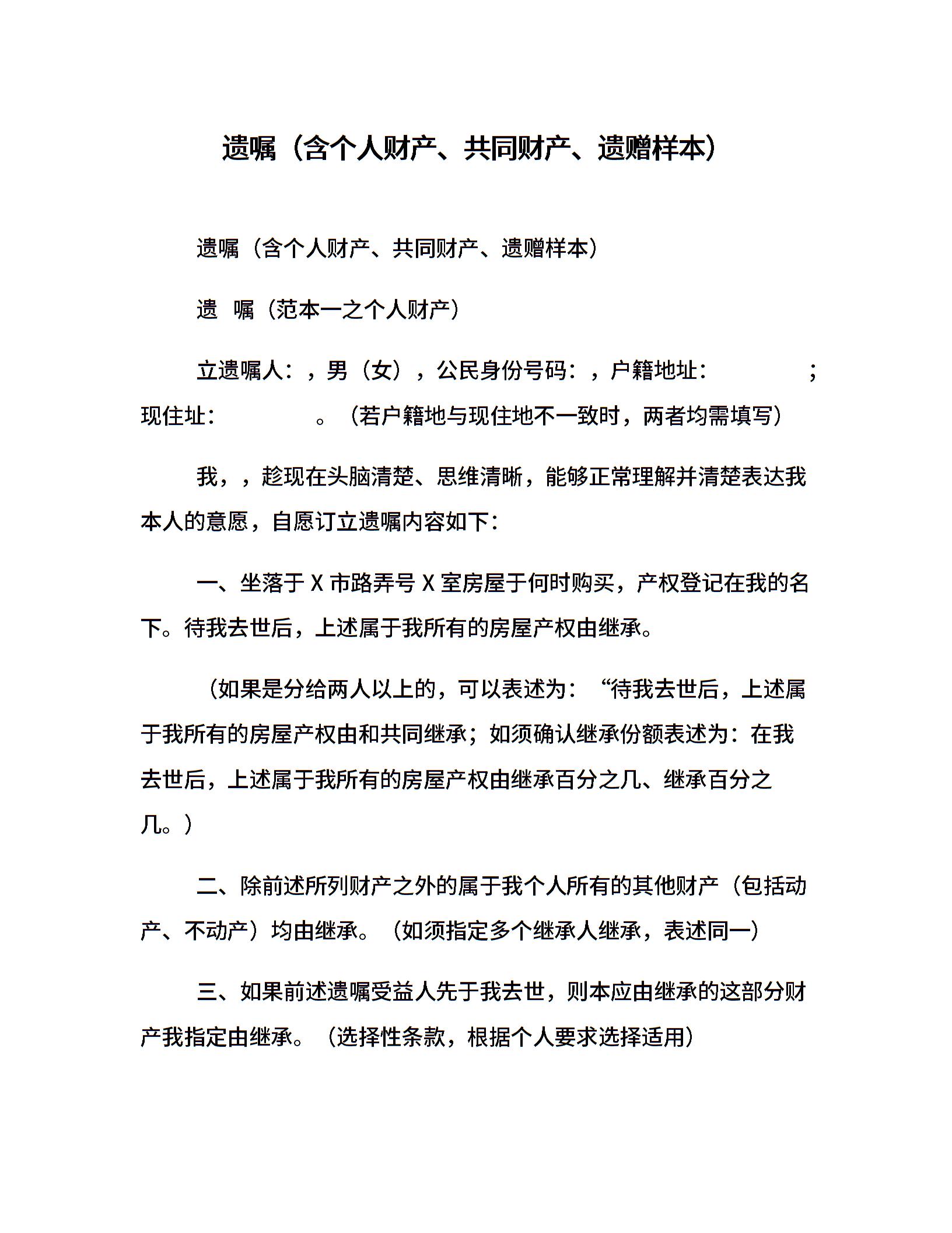 遗嘱(含个人财产、共同财产、遗赠样本)