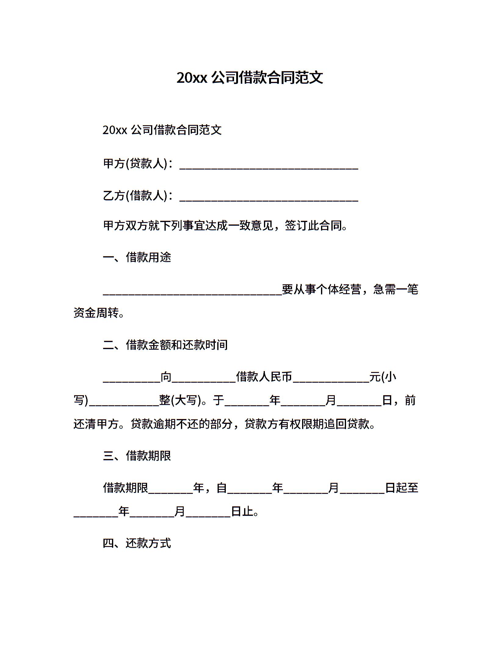 20xx公司借款合同范文