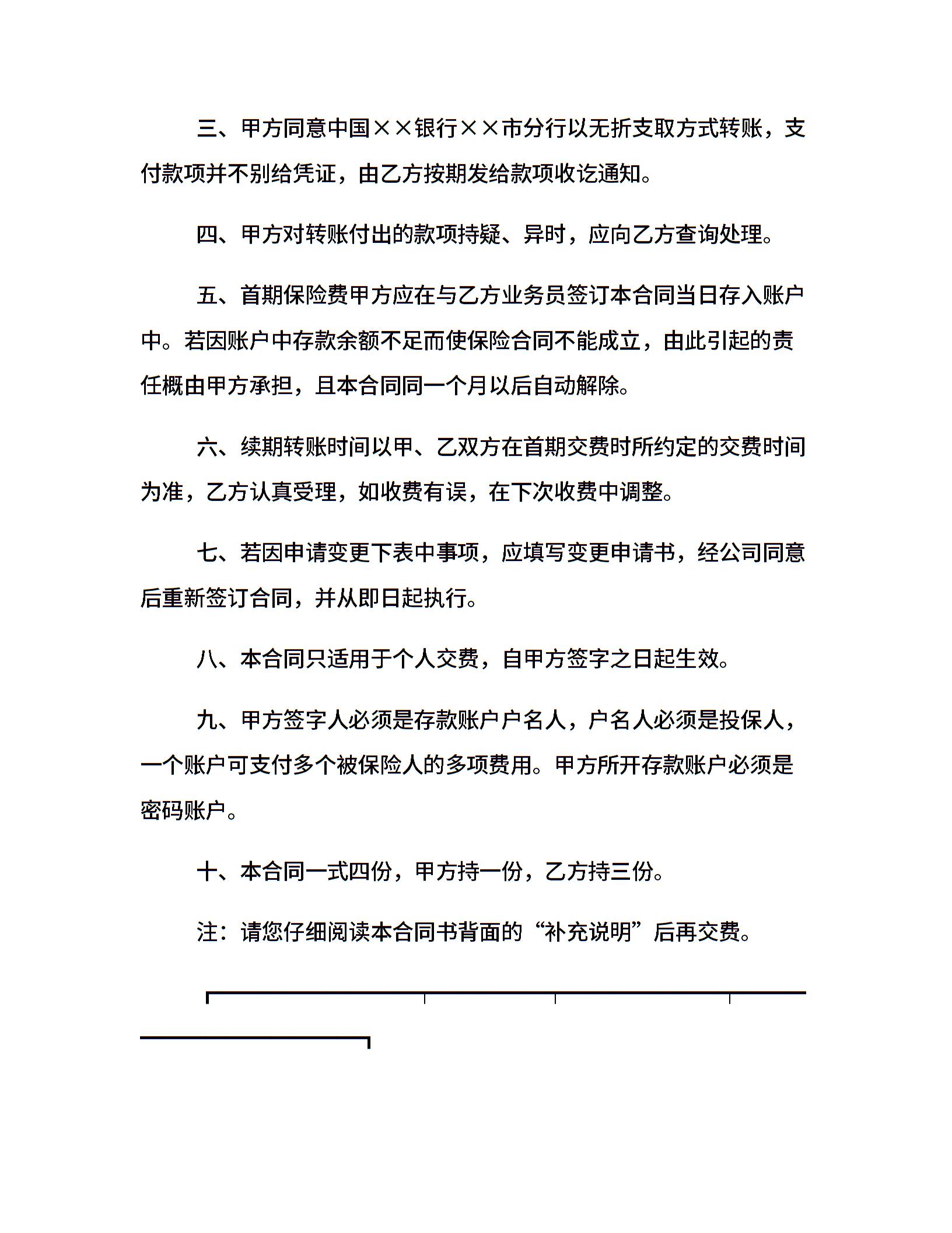 人寿保险公司委托中国银行市分行代扣保险费合同书