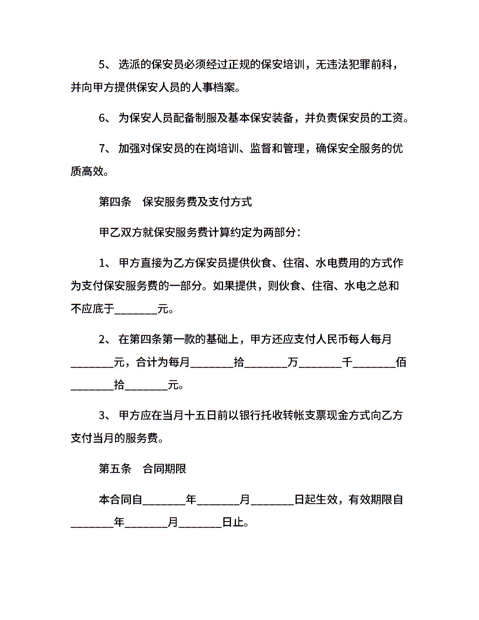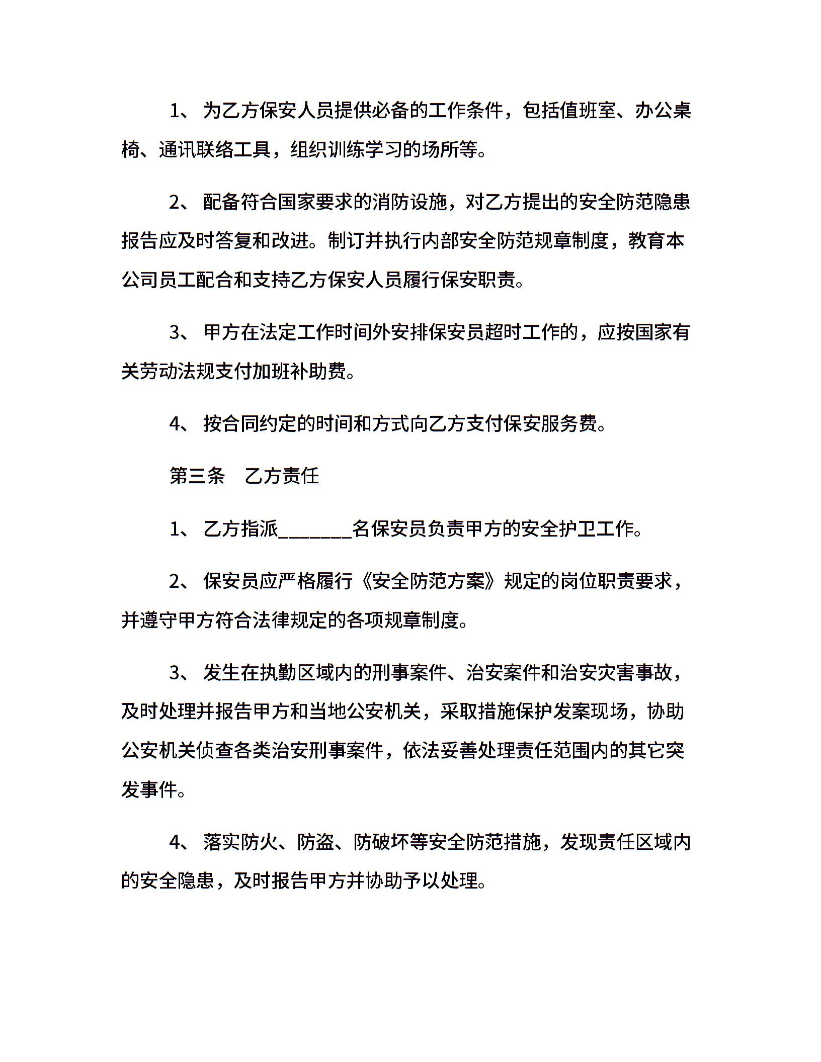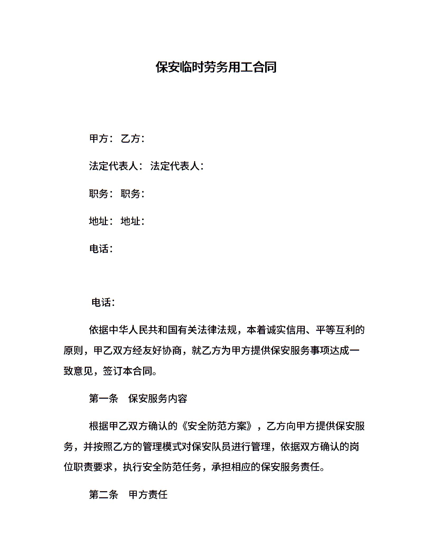 保安临时劳务用工合同