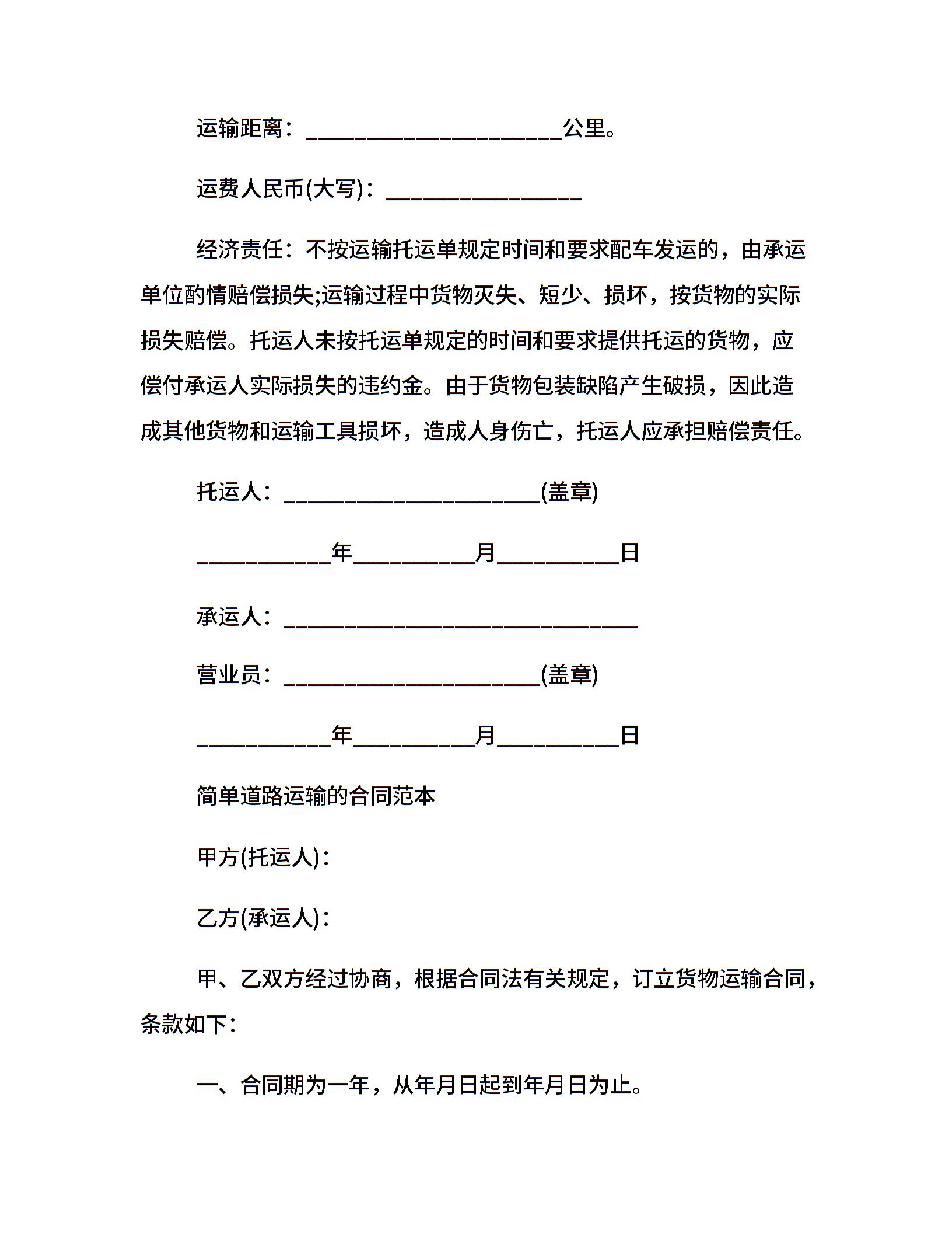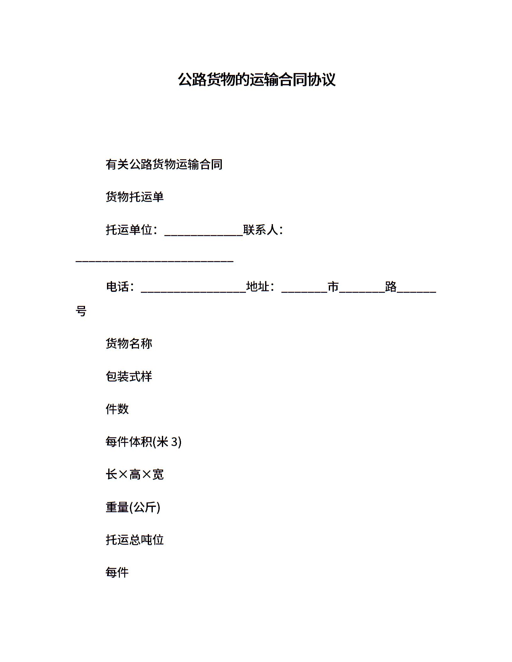 公路货物的运输合同协议