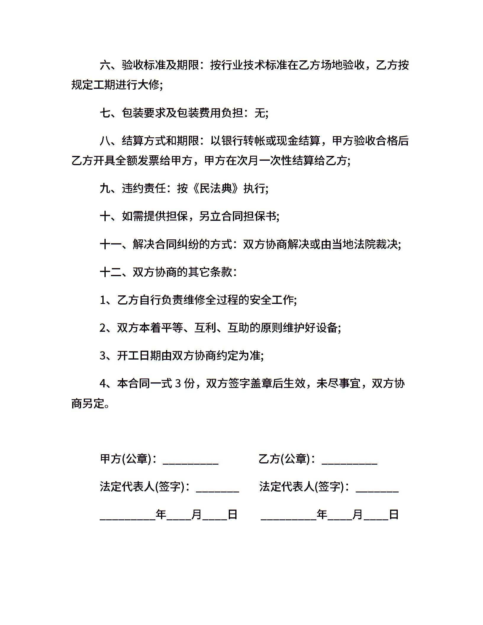 20xx年机械设备维修合同