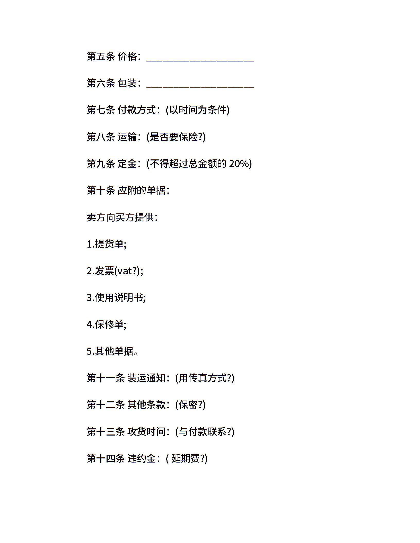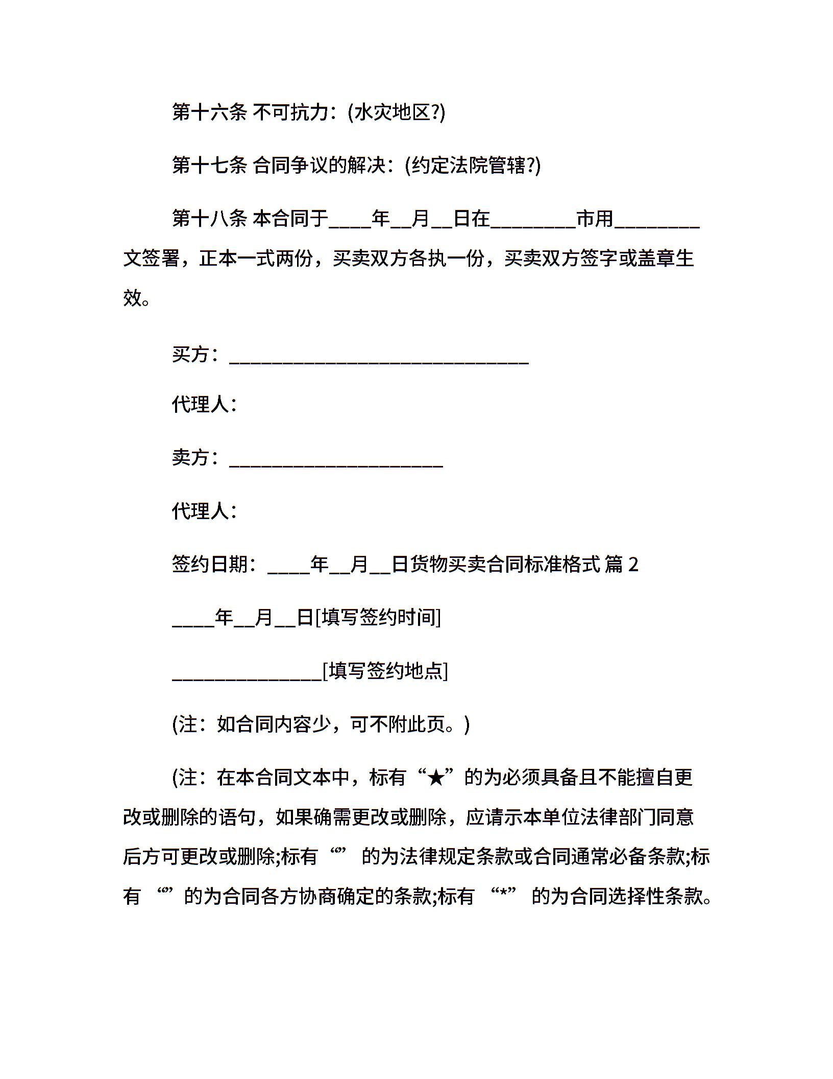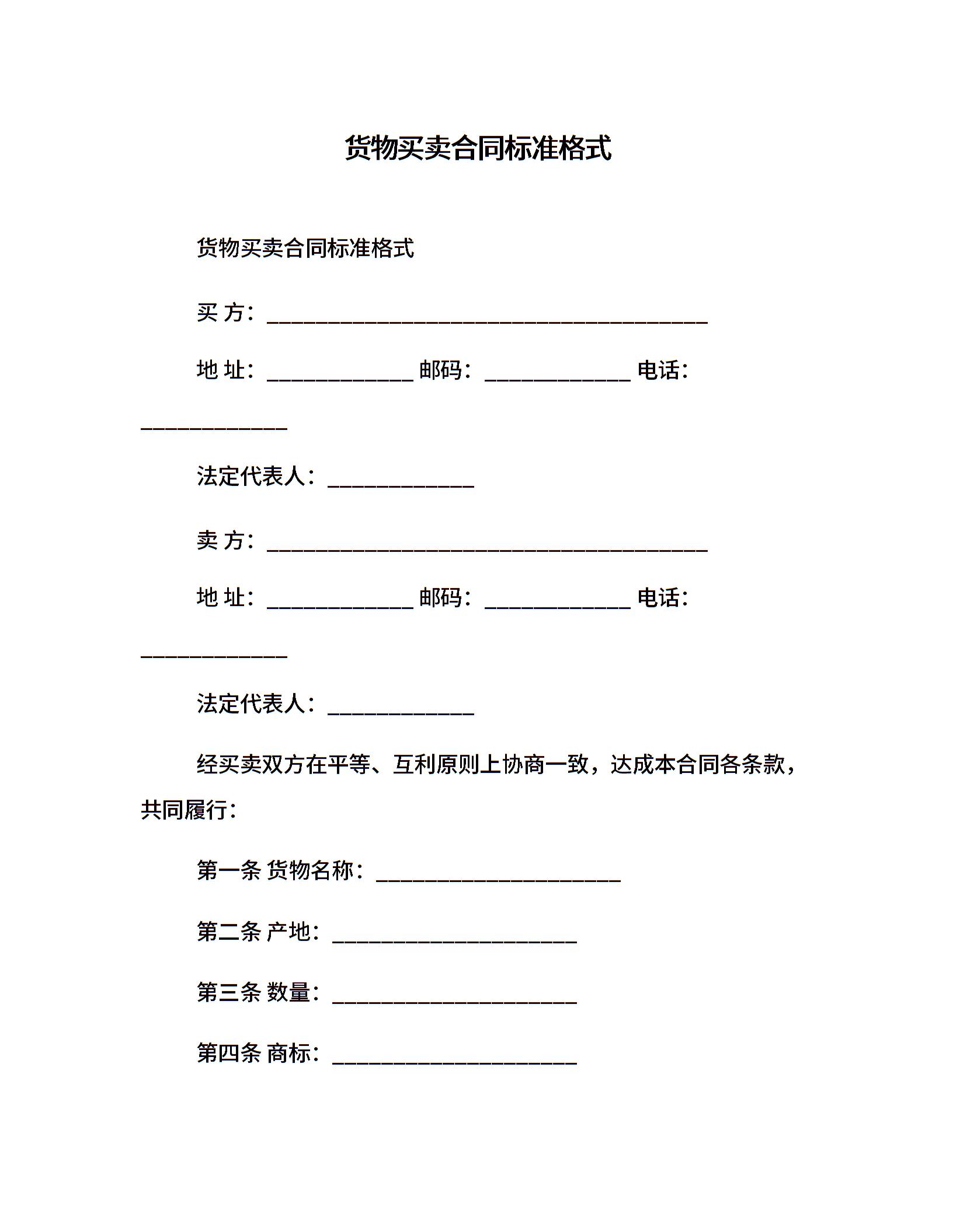 货物买卖合同标准格式