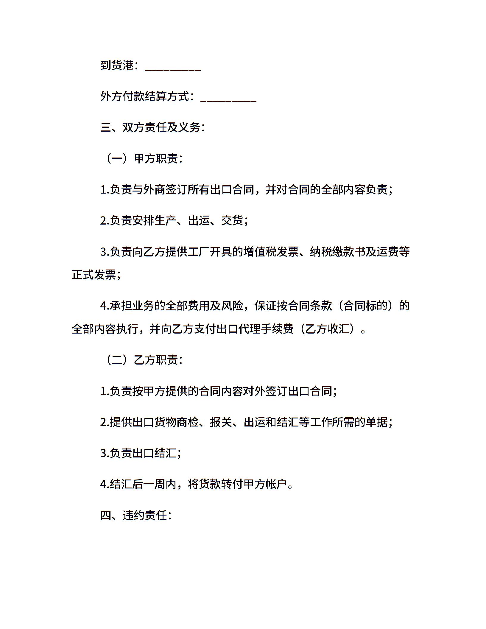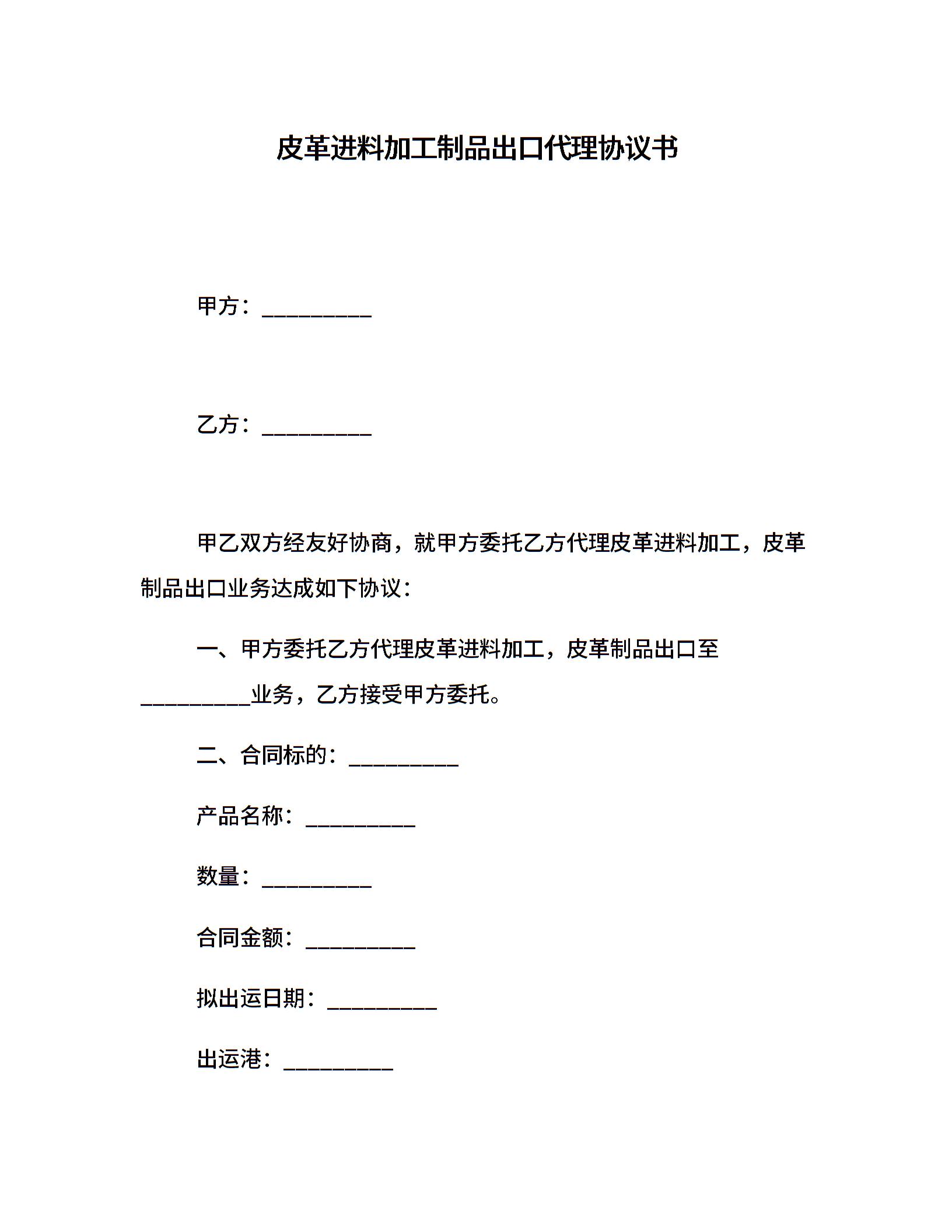 皮革进料加工制品出口代理协议书