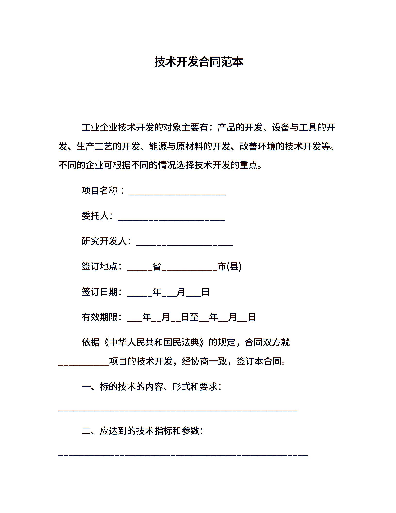 技术开发合同范本