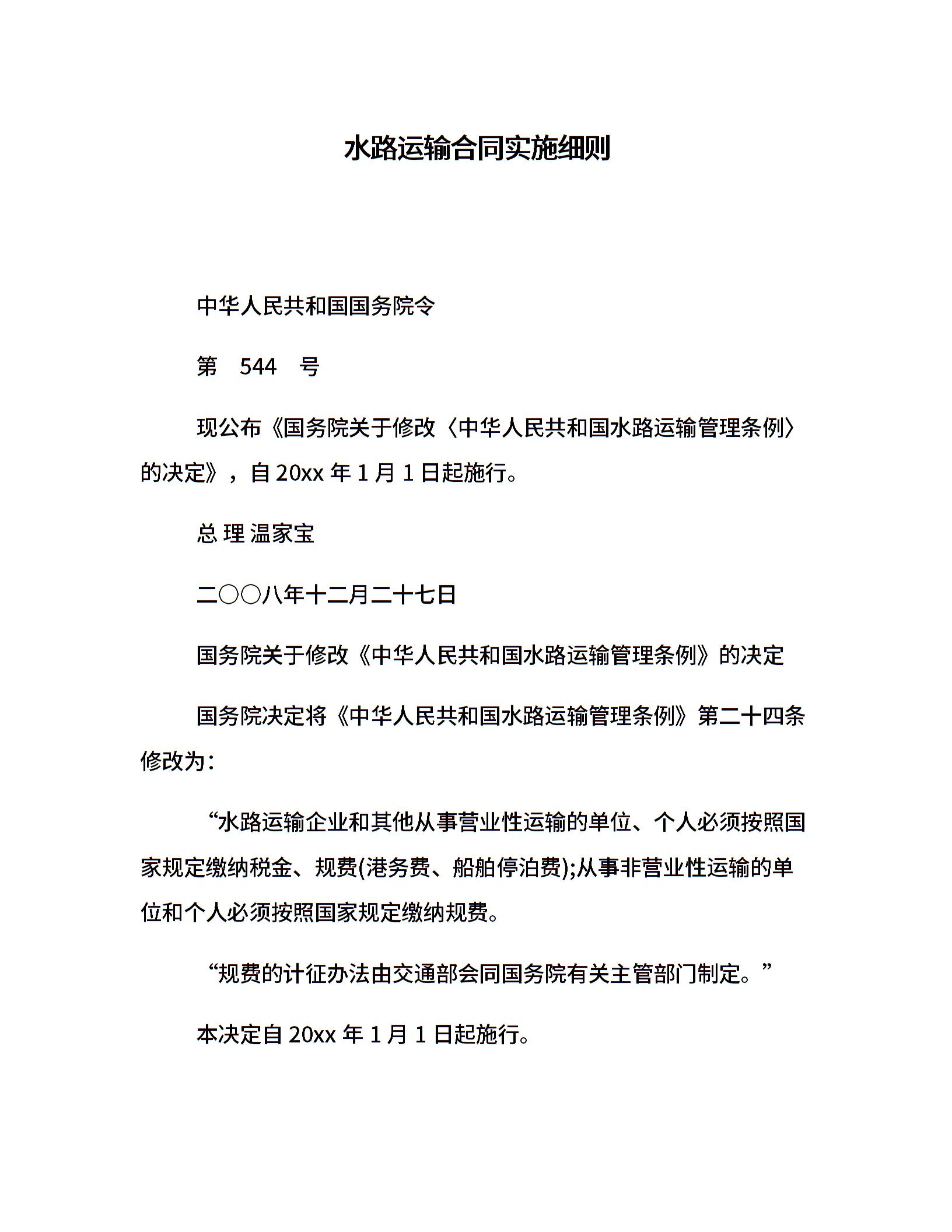 水路运输合同实施细则