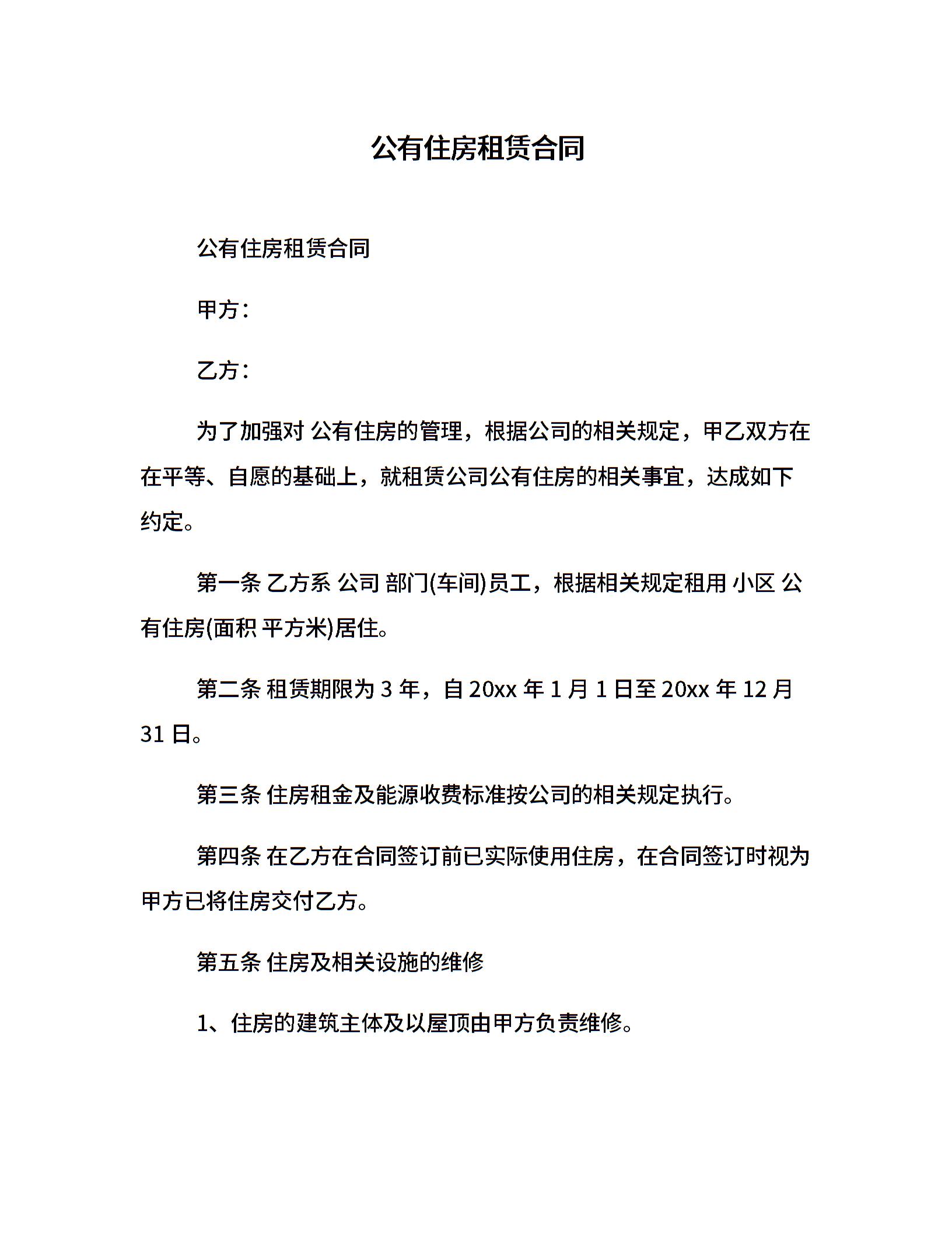 公有住房租赁合同