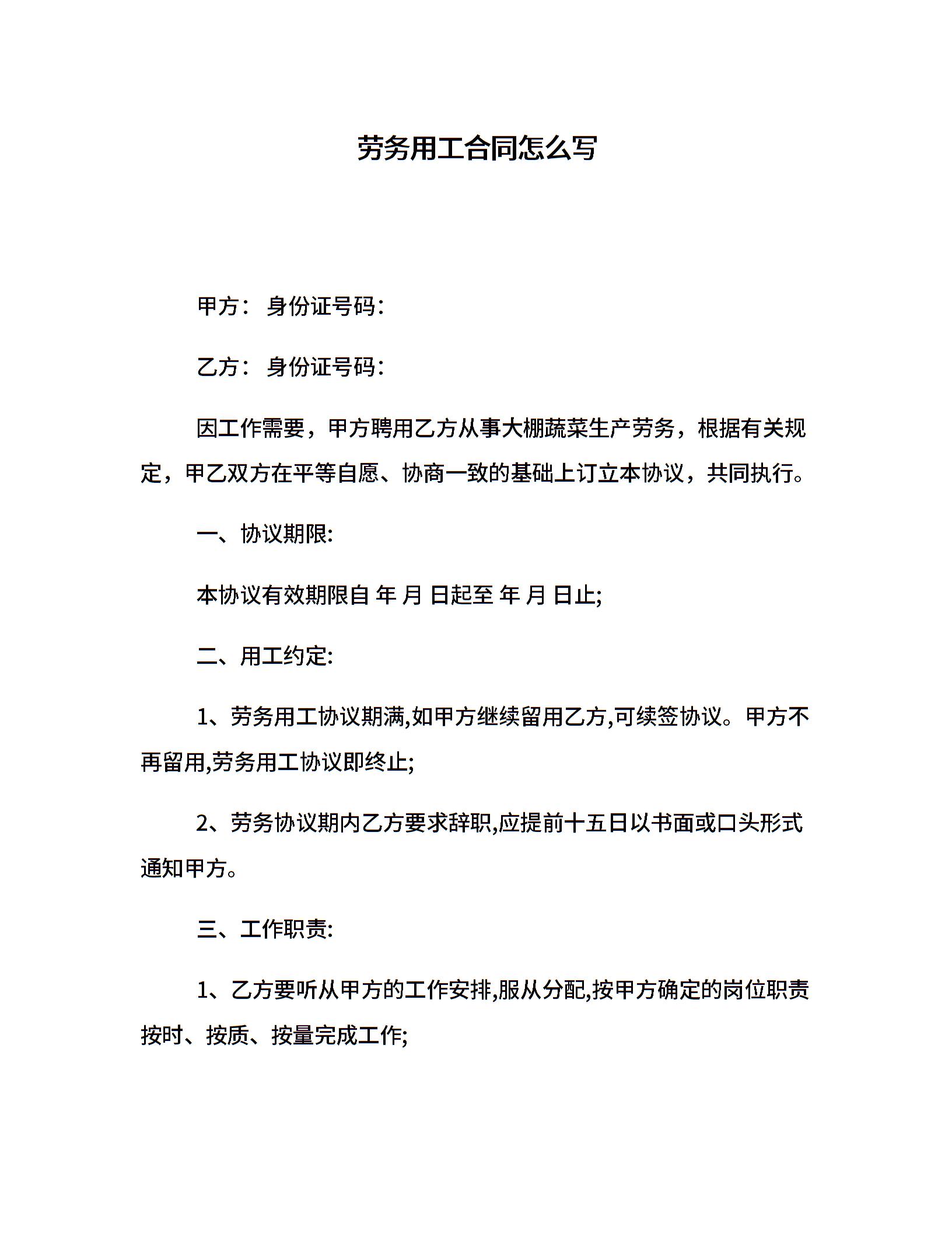 劳务用工合同怎么写