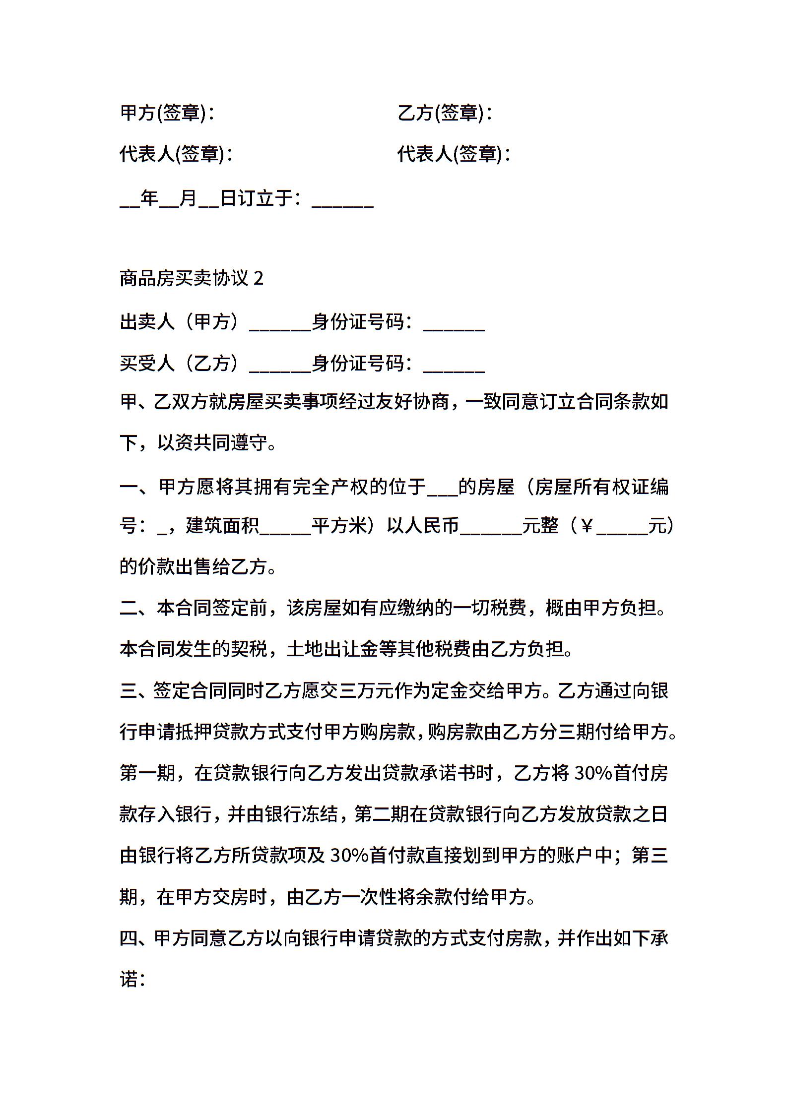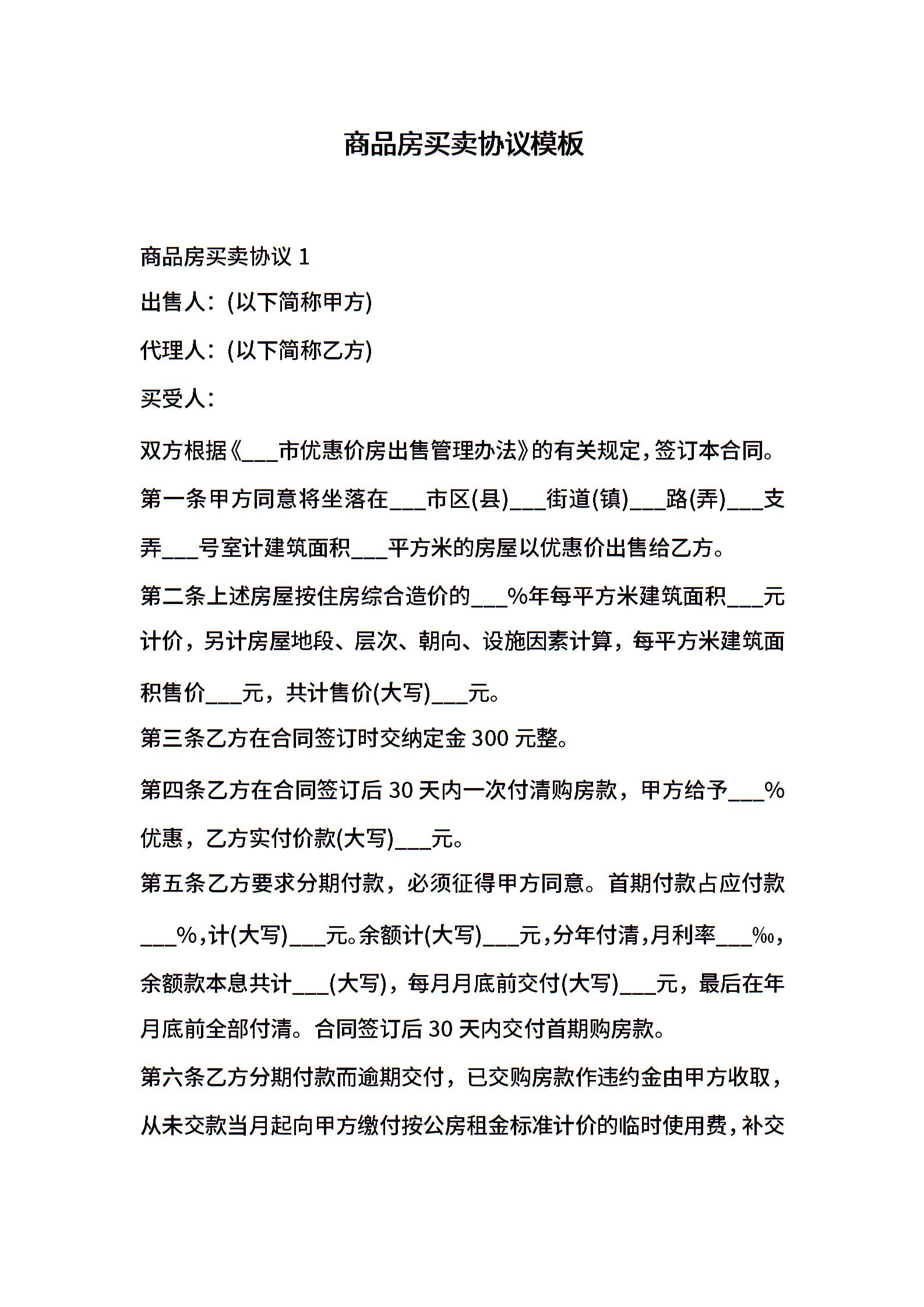 商品房买卖协议模板