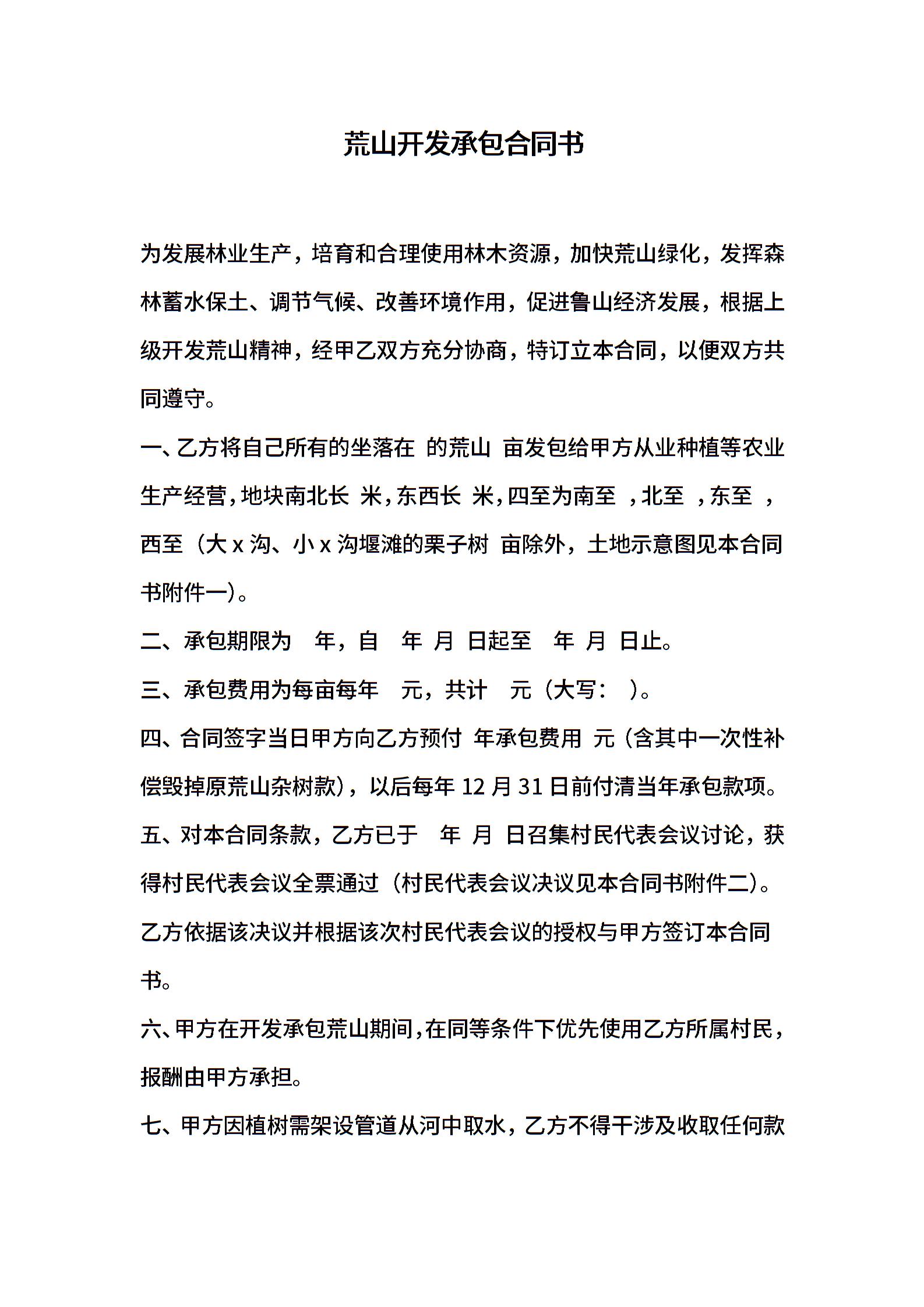 荒山开发承包合同书