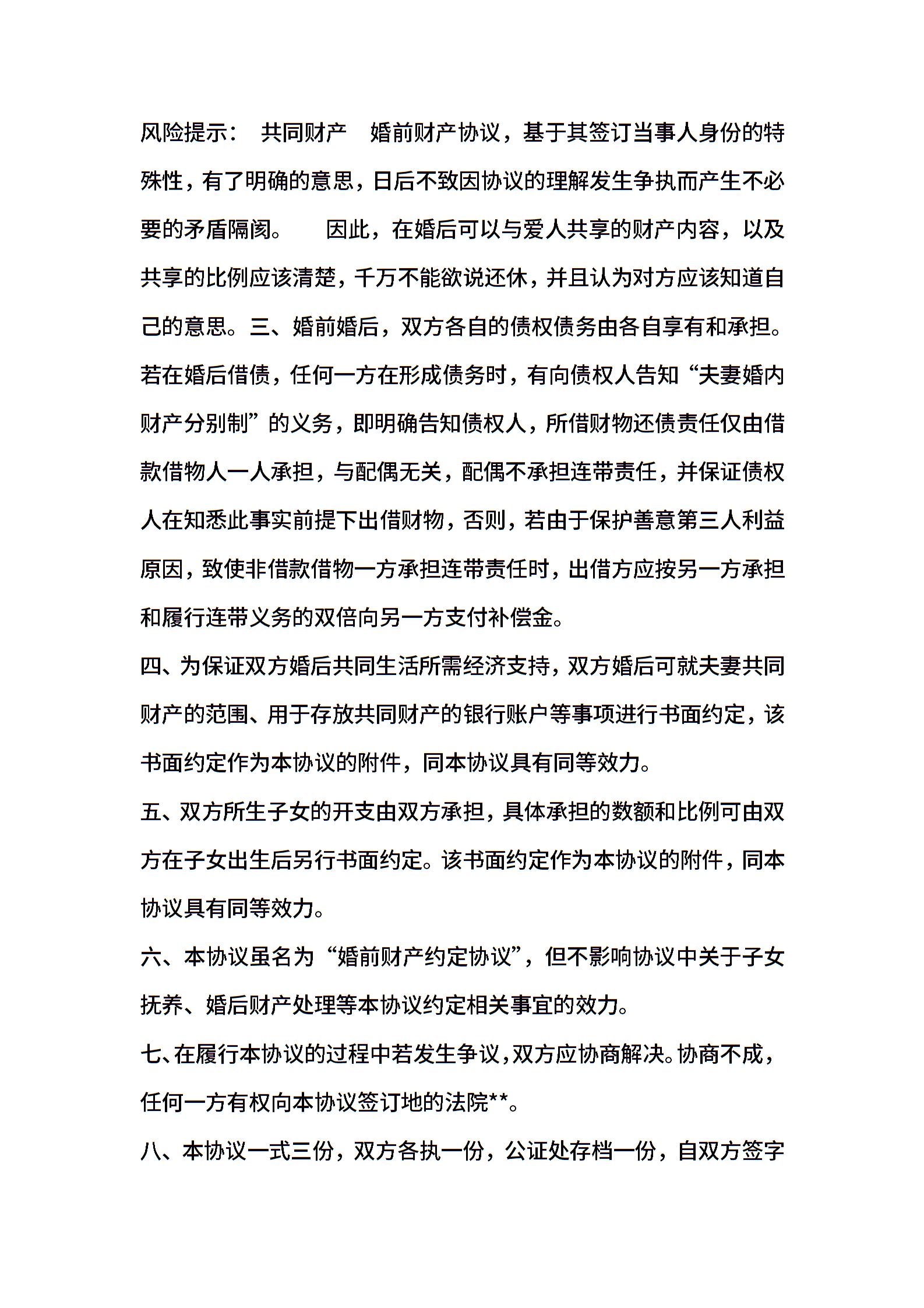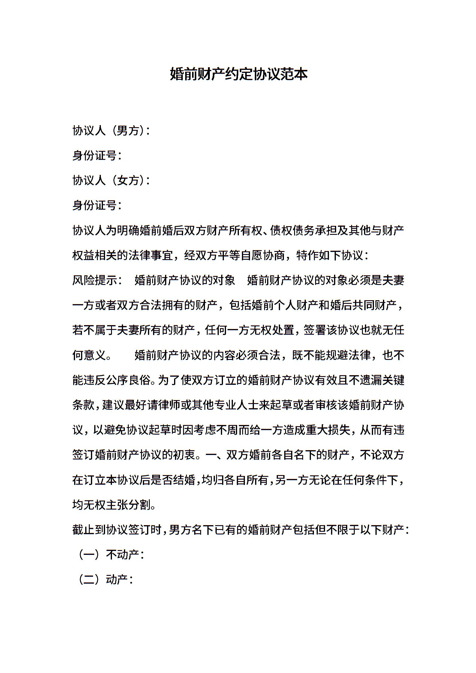 婚前财产约定协议范本