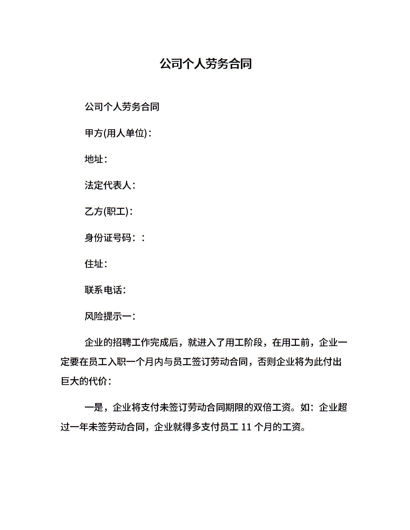 公司个人劳务合同