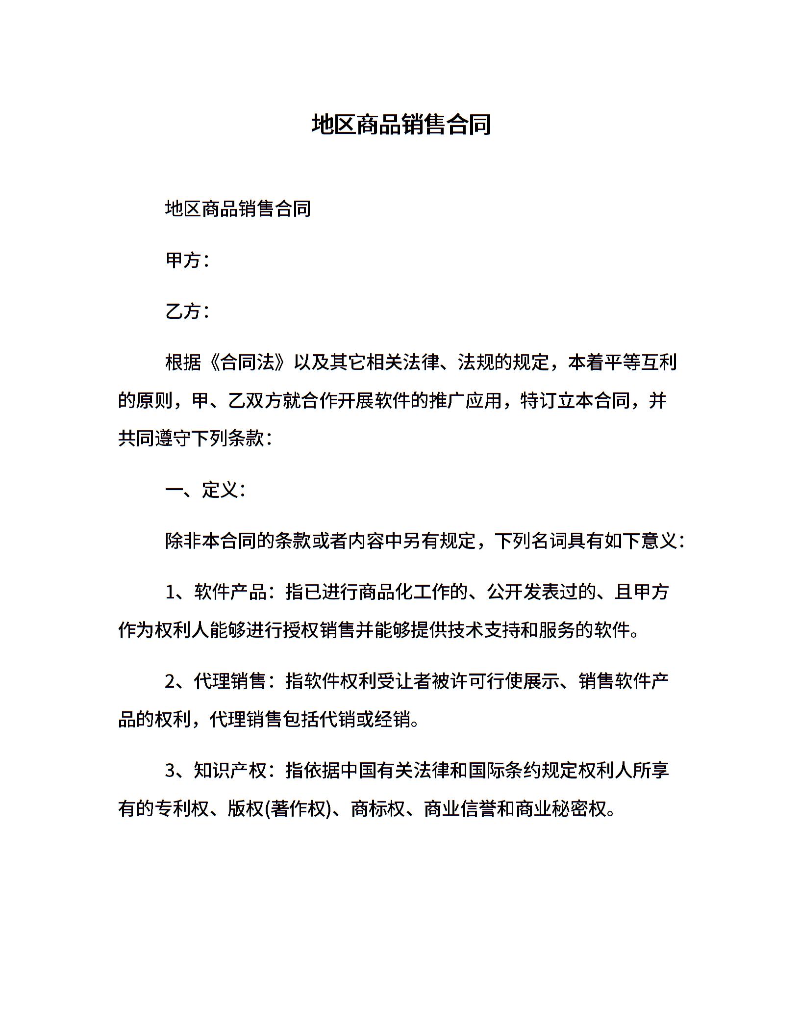 地区商品销售合同