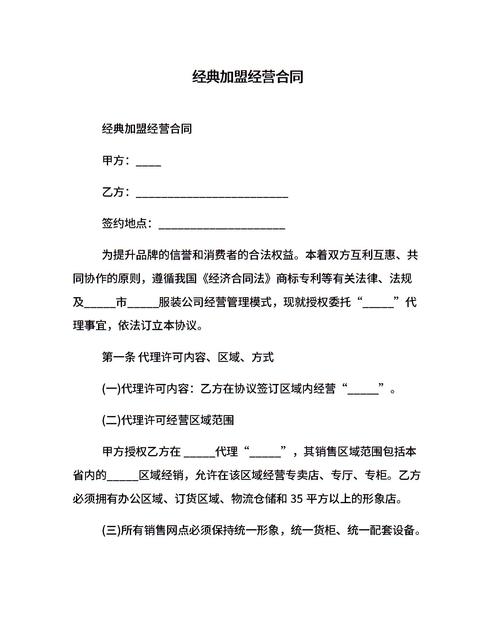 经典加盟经营合同