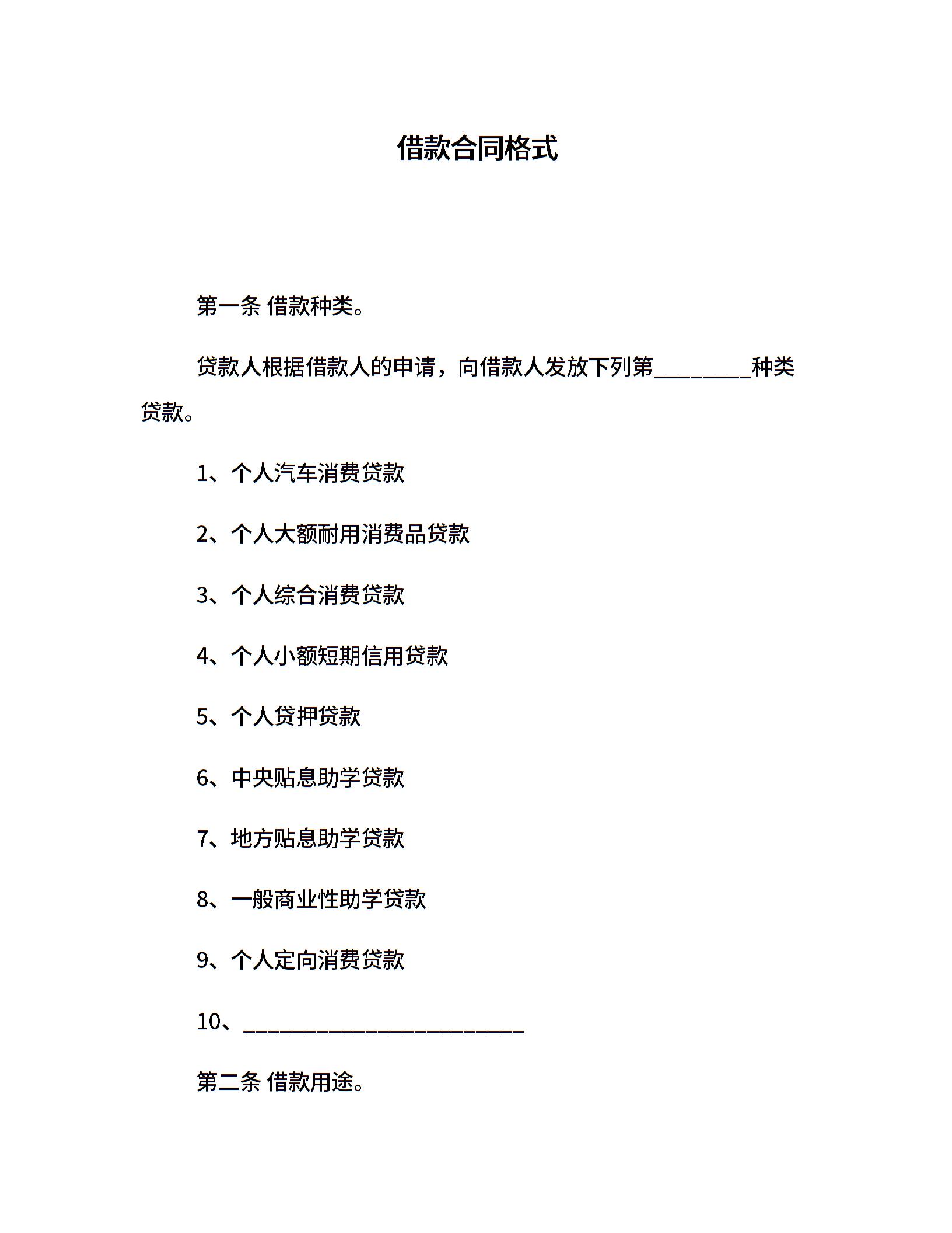 借款合同格式