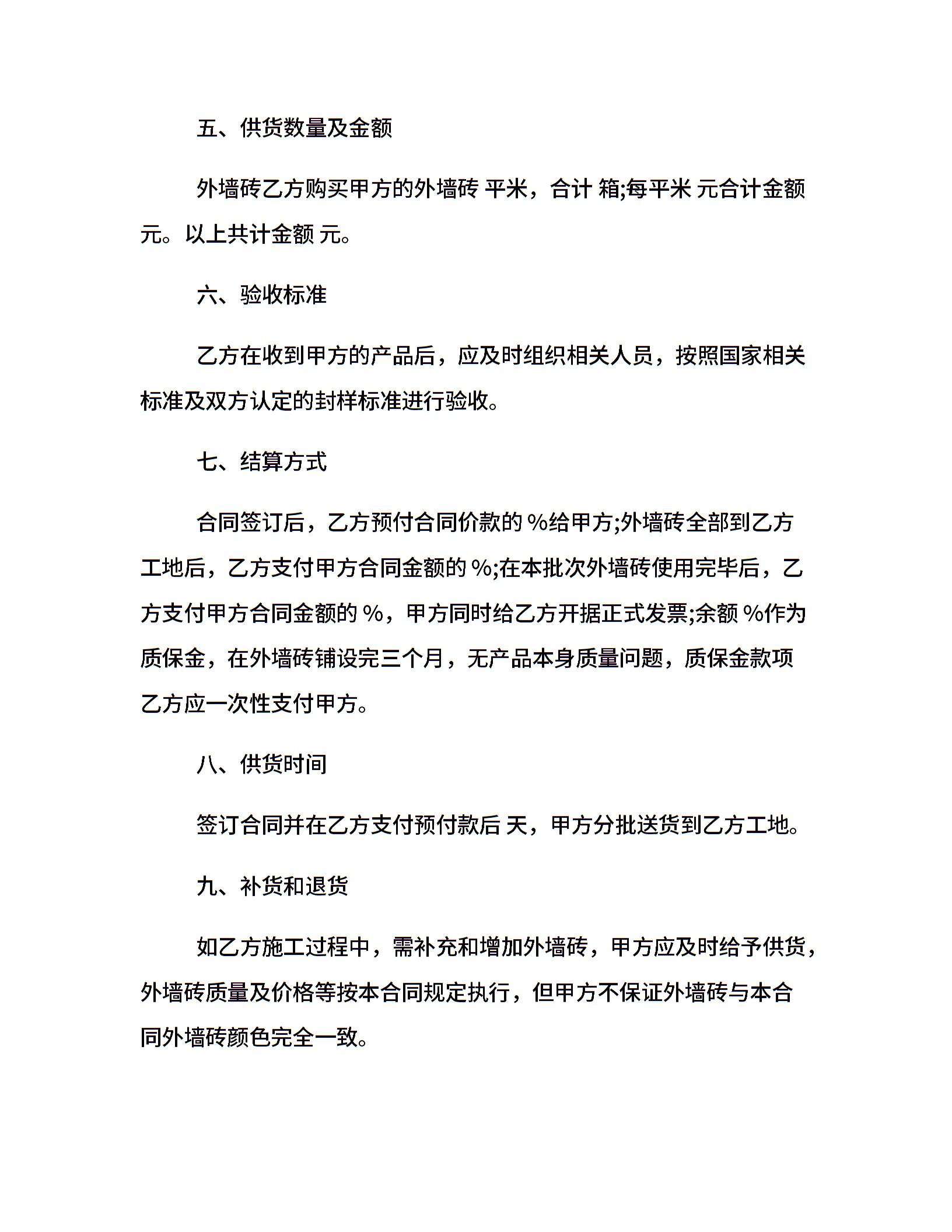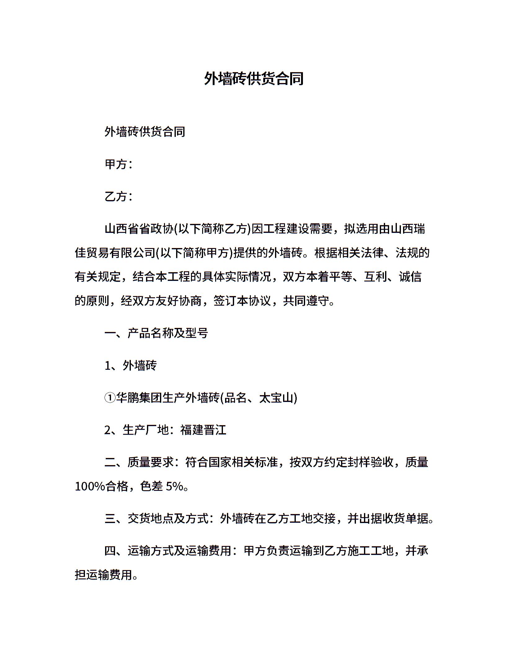 外墙砖供货合同