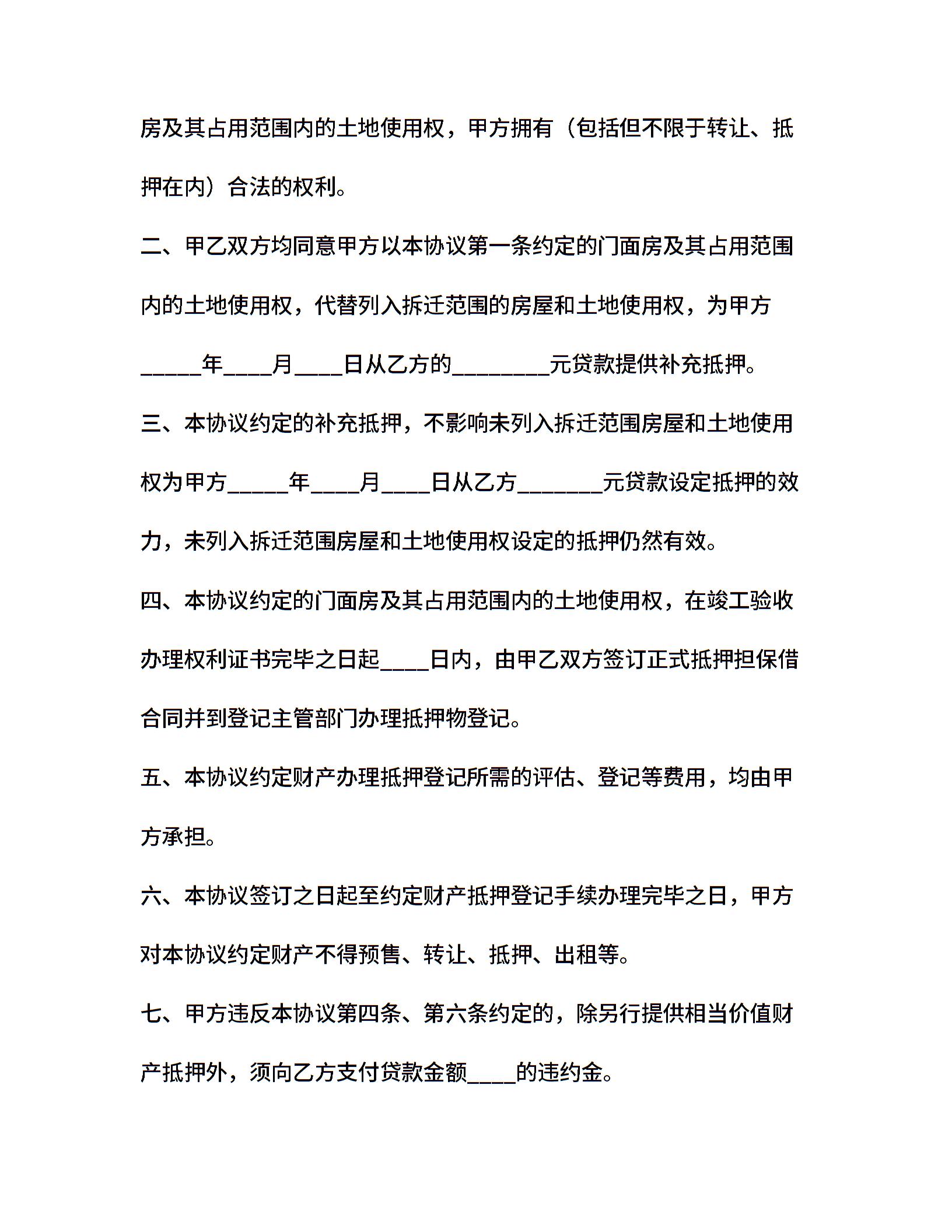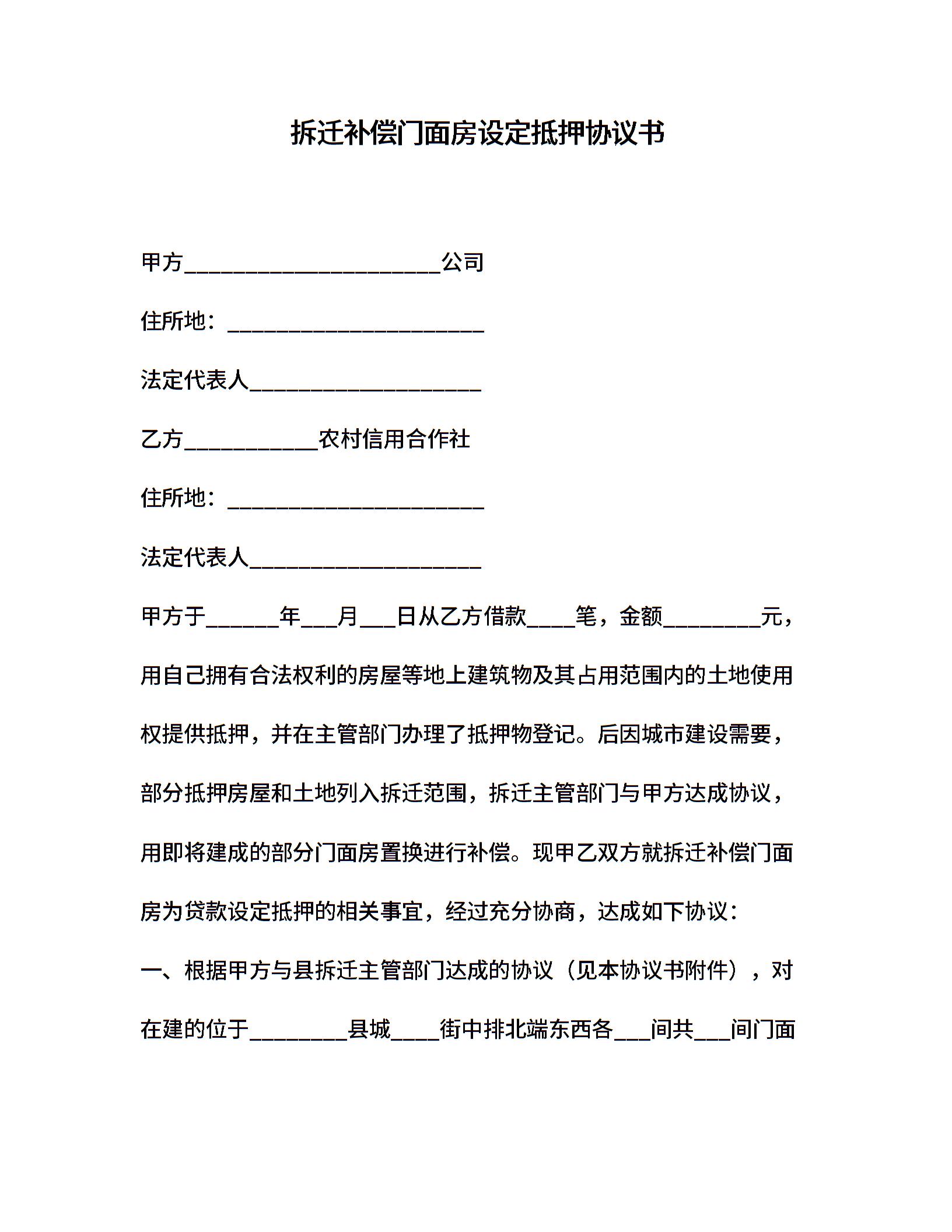 拆迁补偿门面房设定抵押协议书