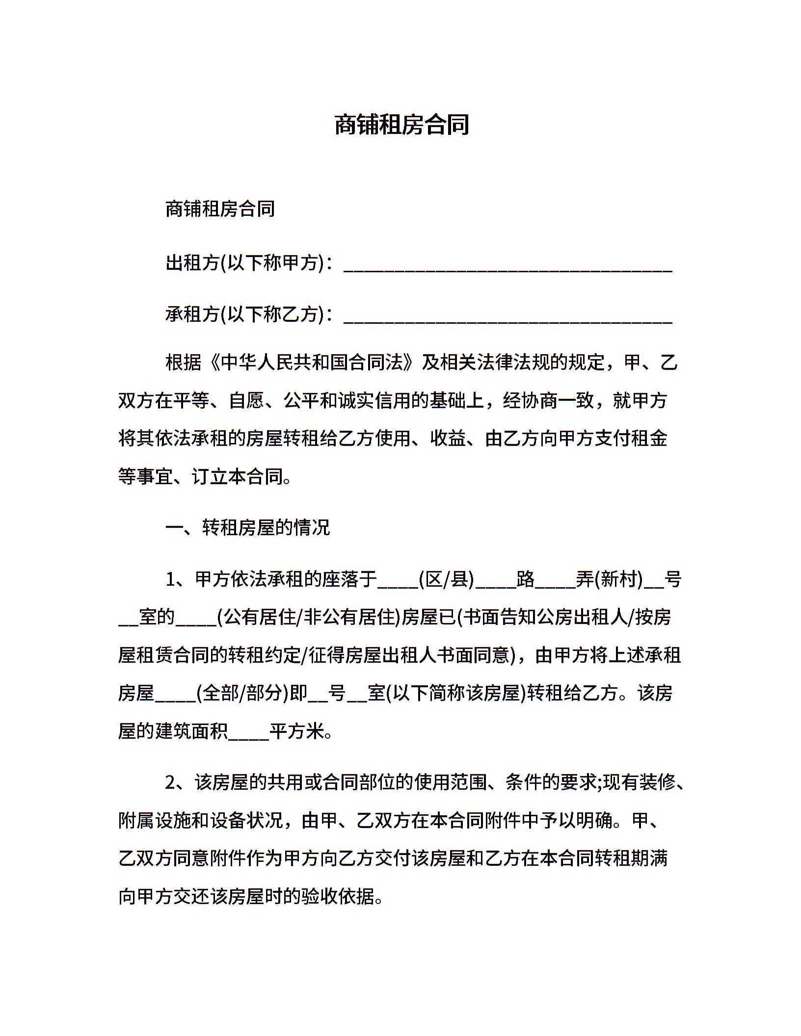 商铺租房合同