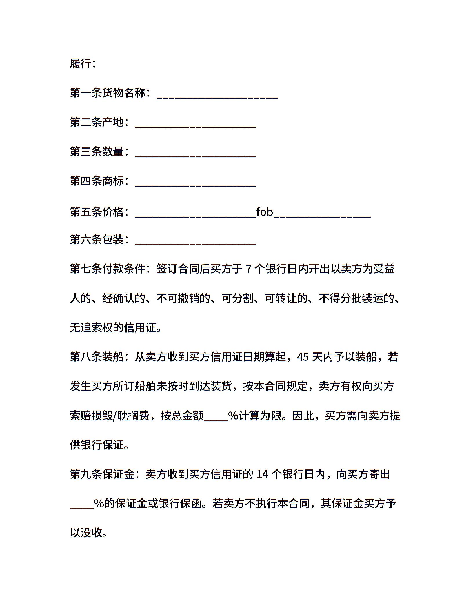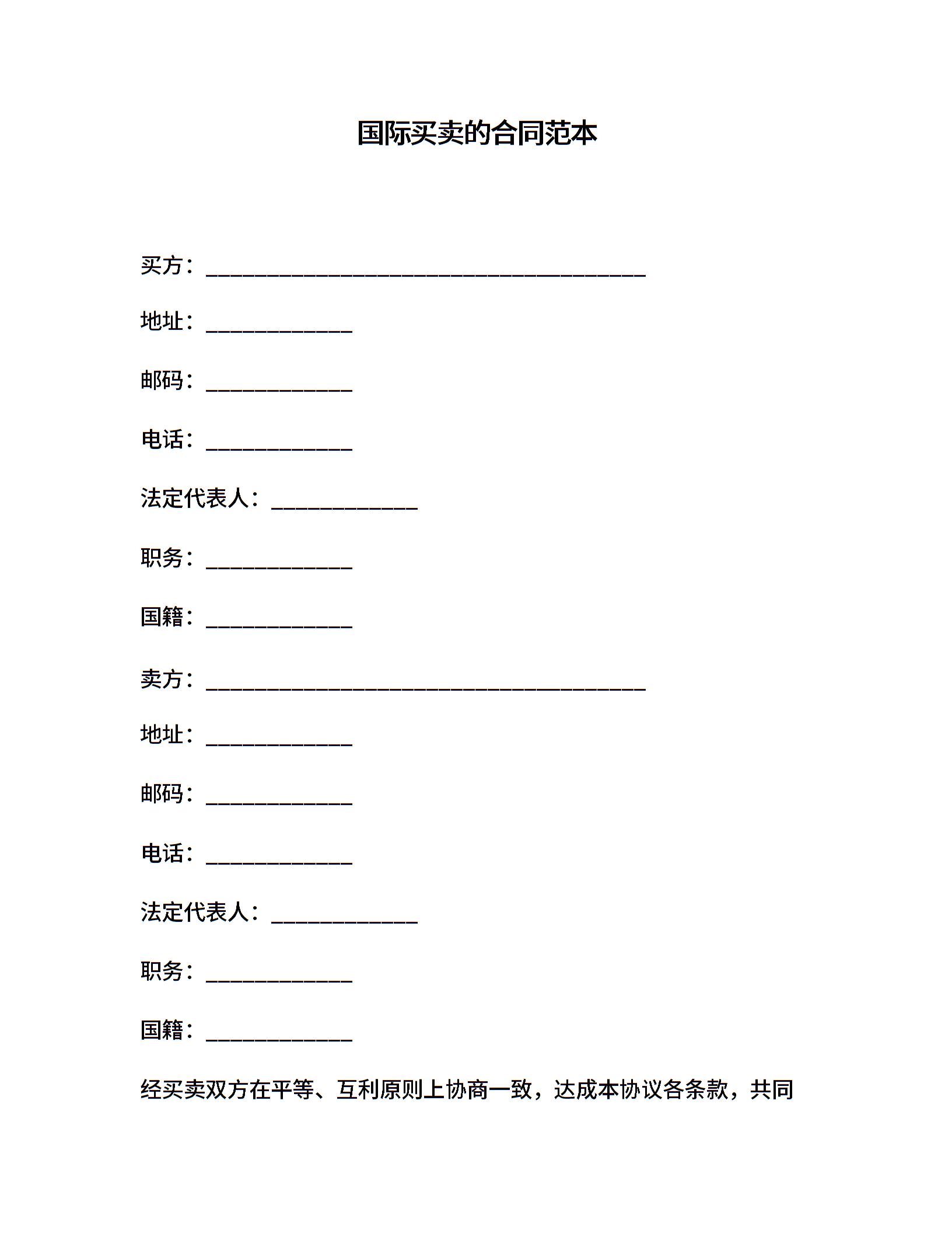 国际买卖的合同范本