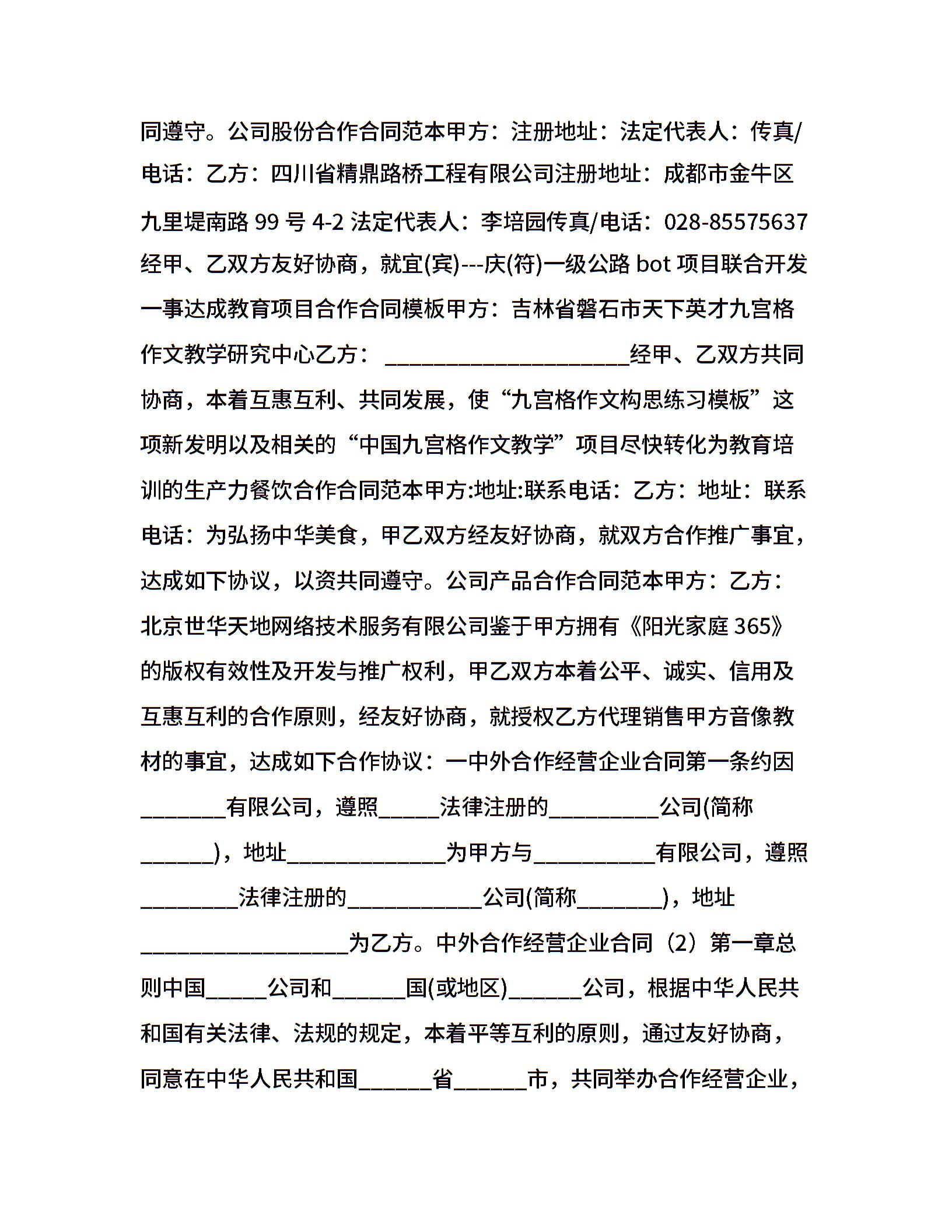 当前位置:量子办公 > 合同模板 > 合作合同 >