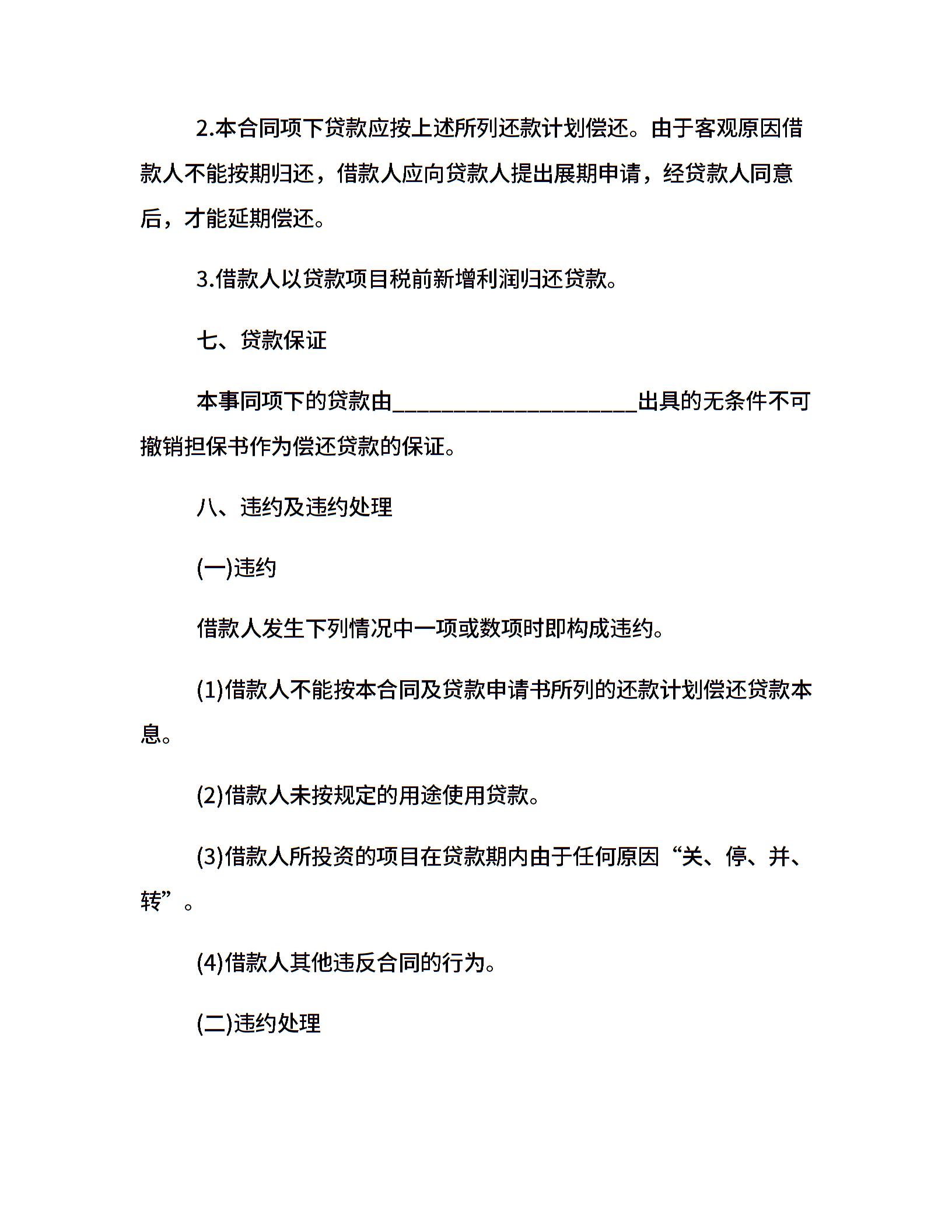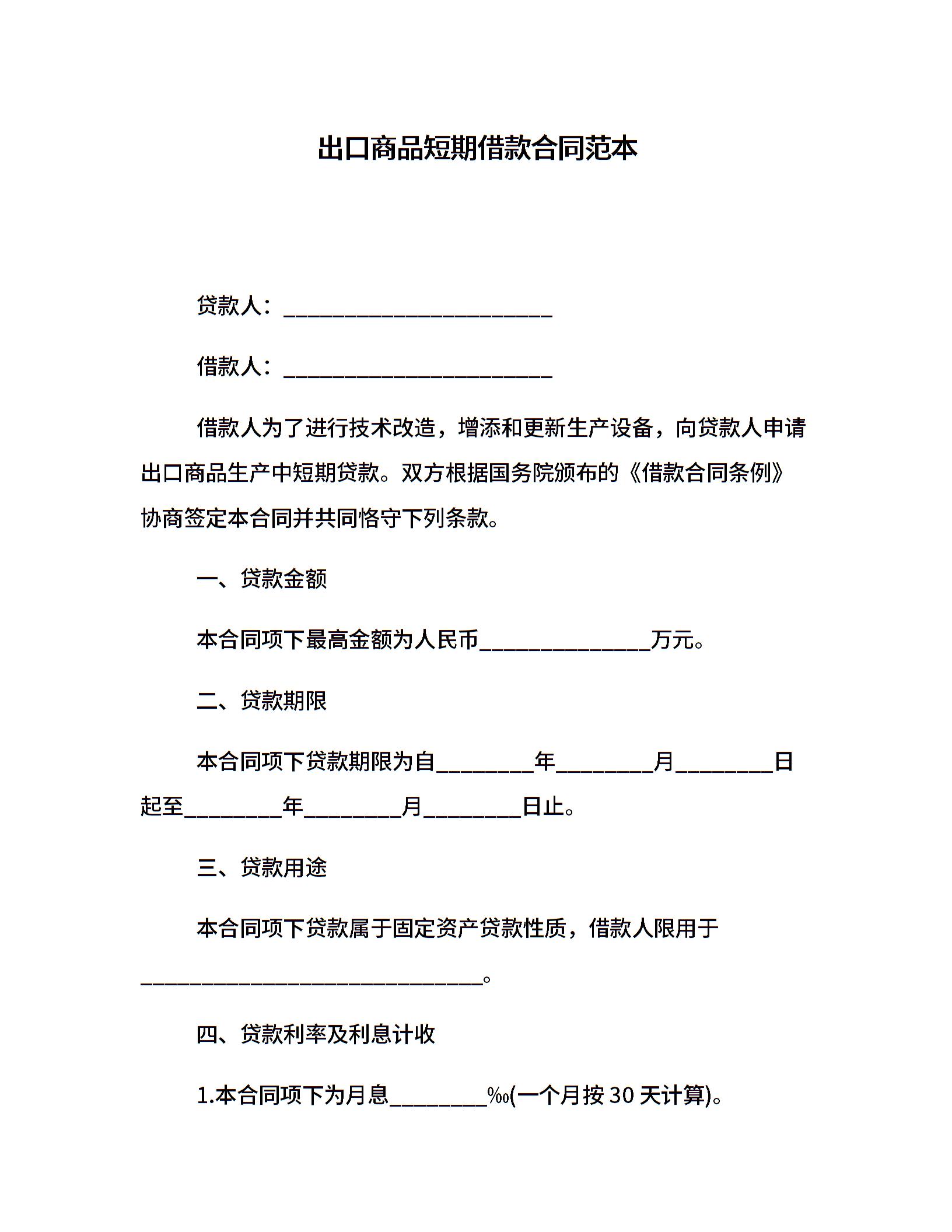 出口商品短期借款合同范本