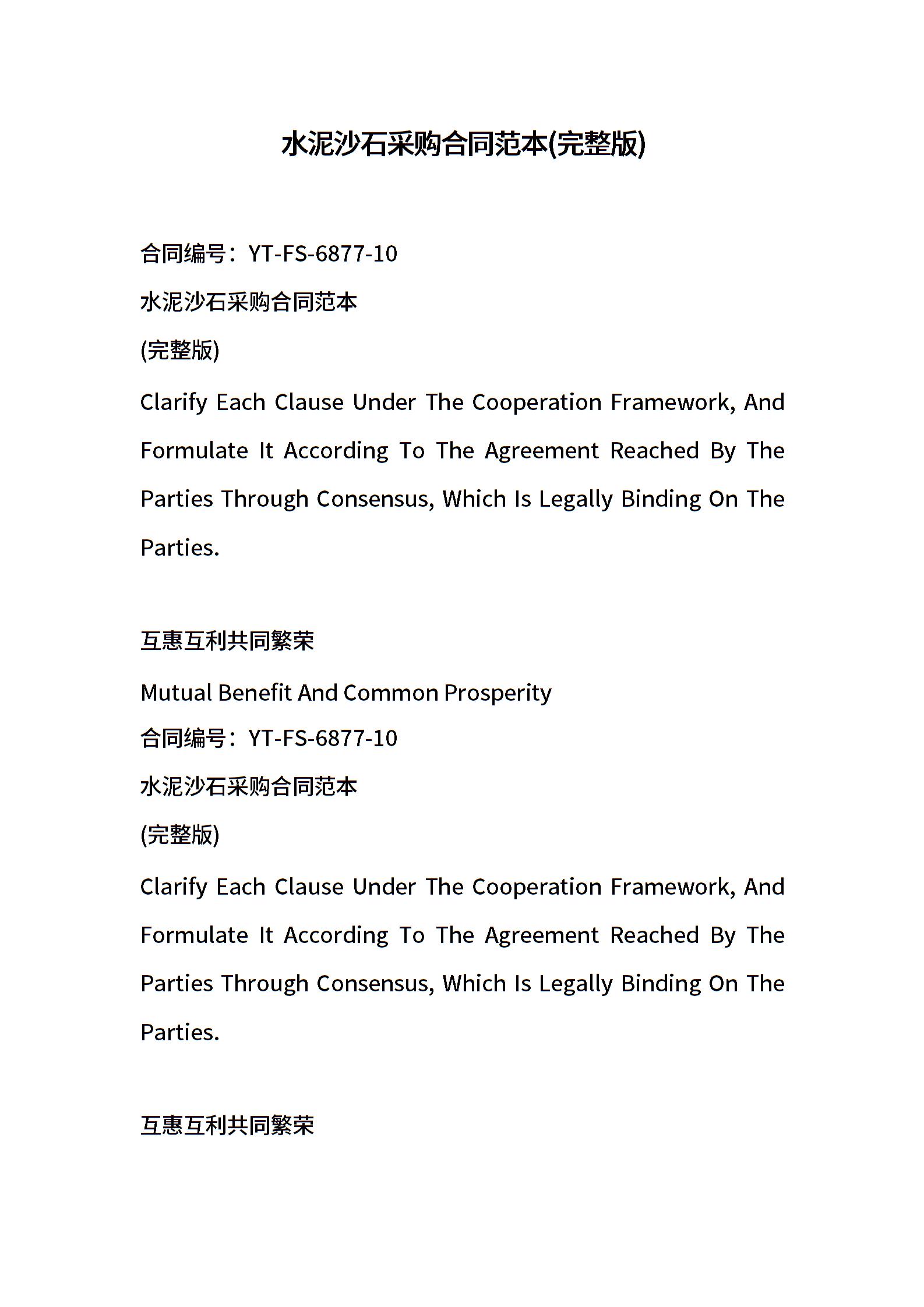 水泥沙石采购合同范本(完整版)