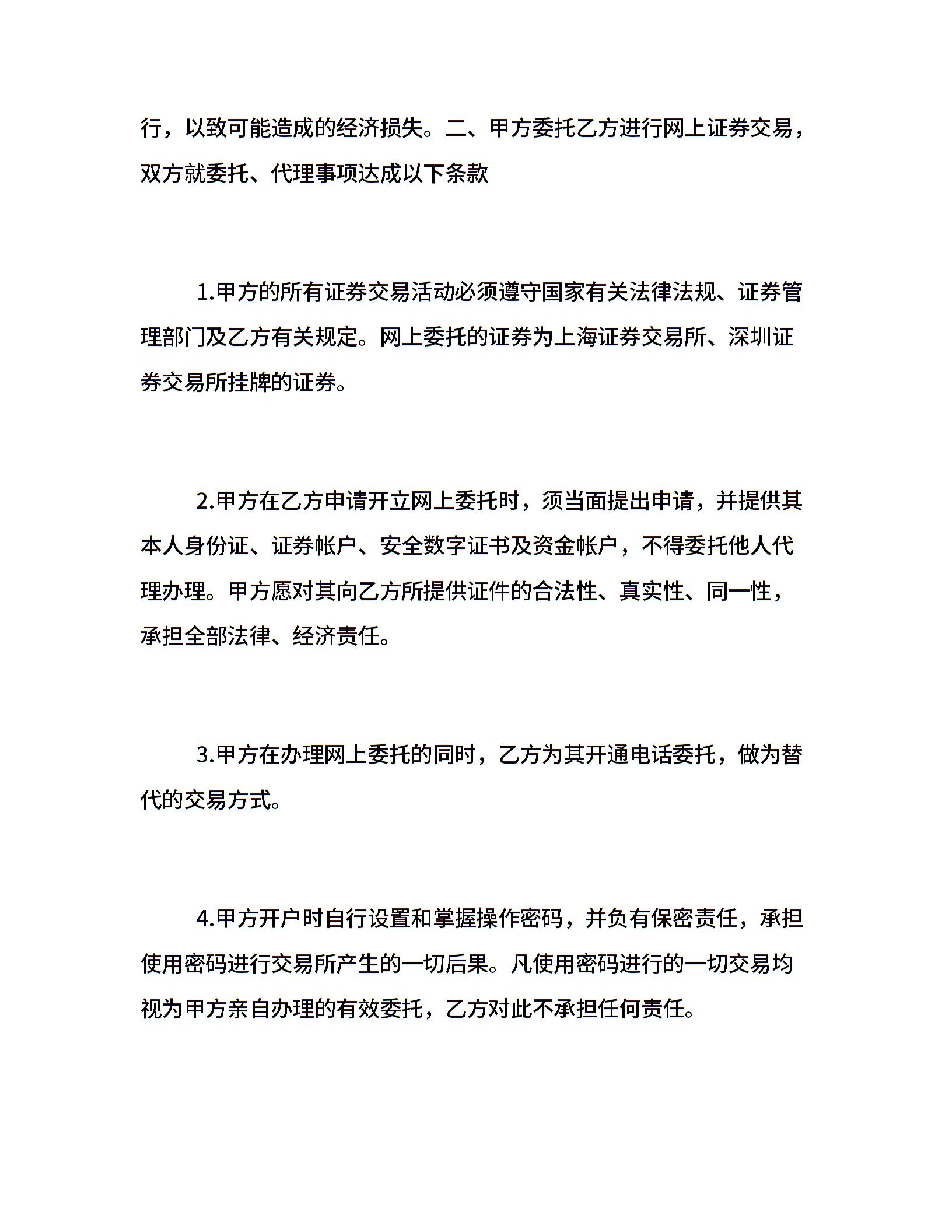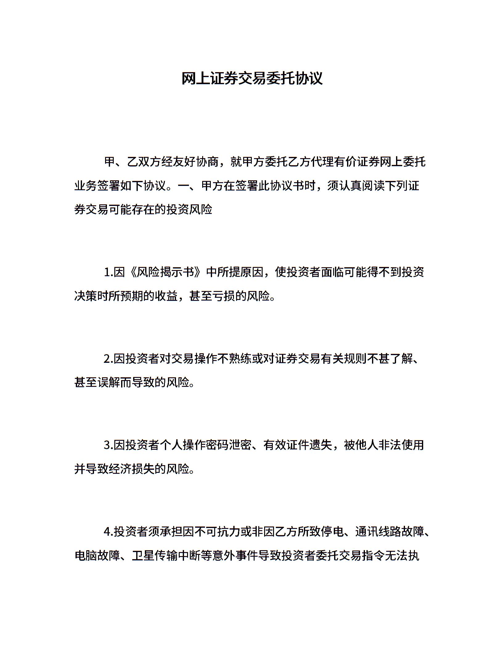 网上证券交易委托协议