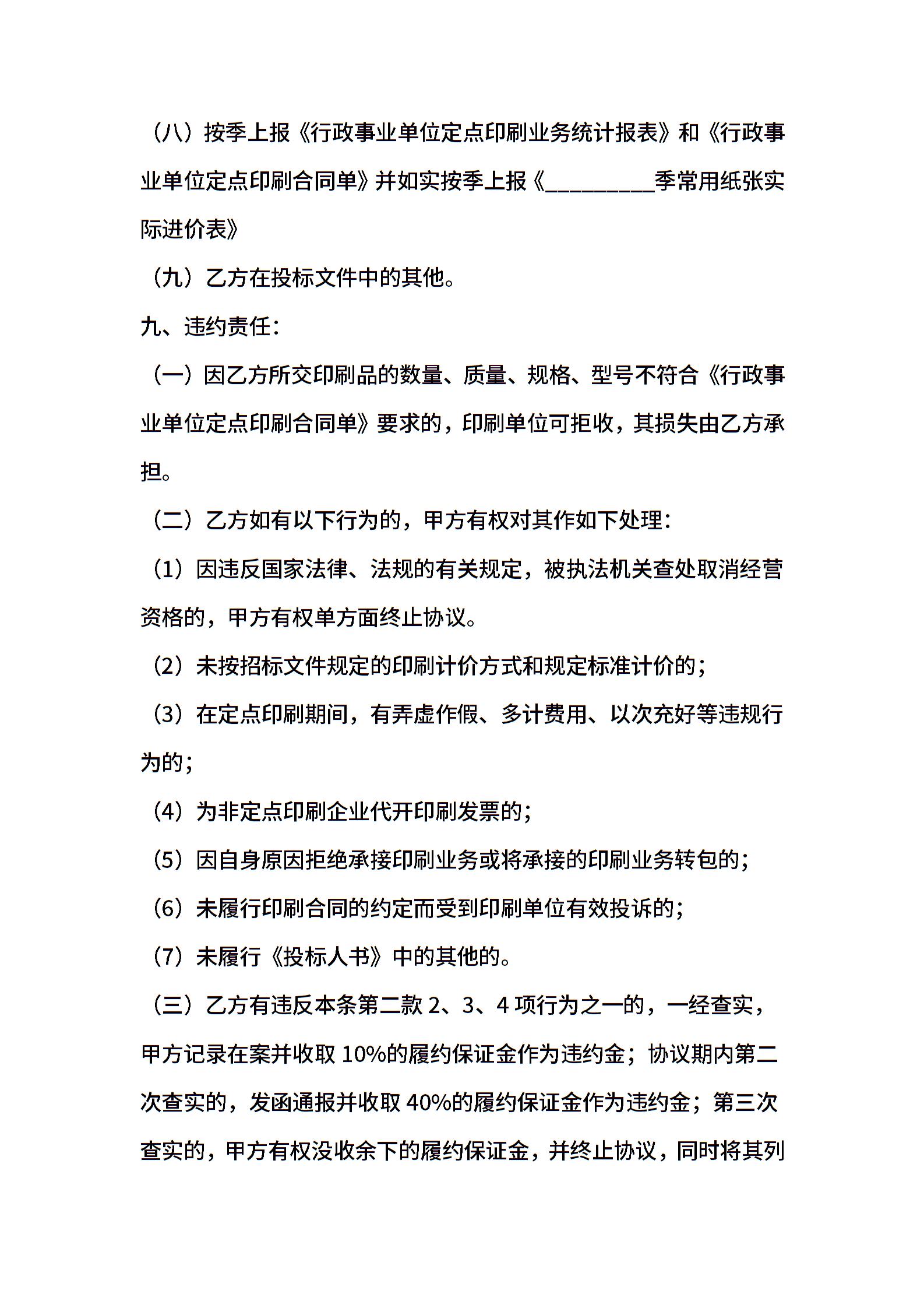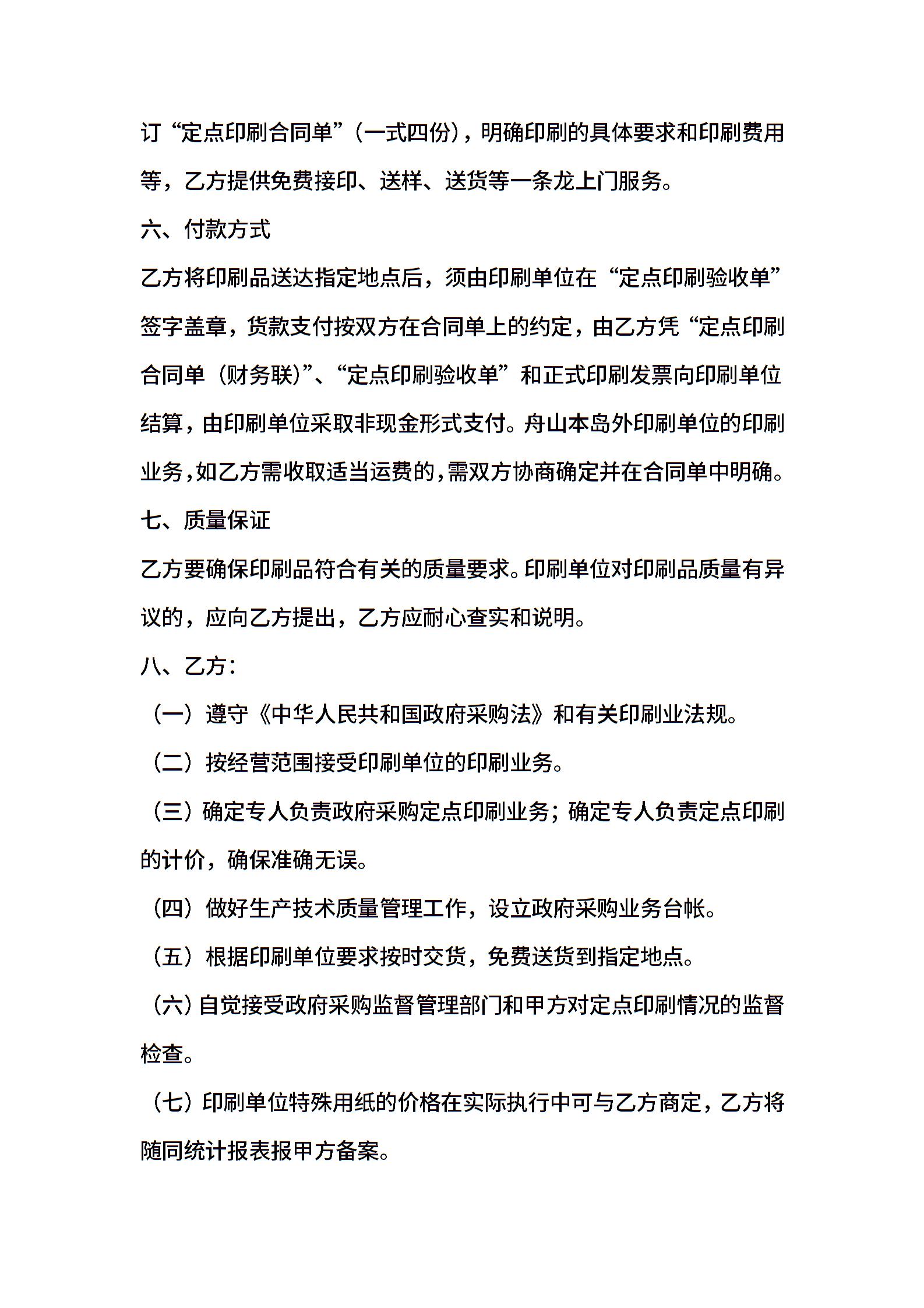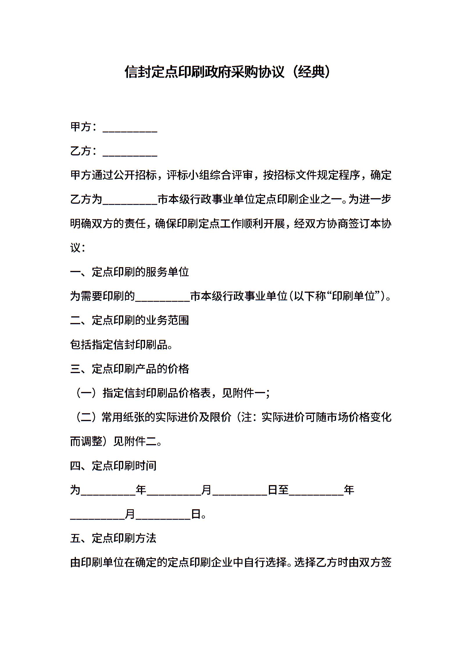 信封定点印刷政府采购协议(经典)