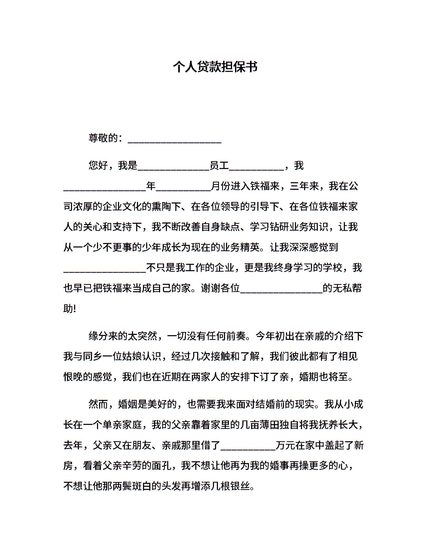 个人贷款担保书