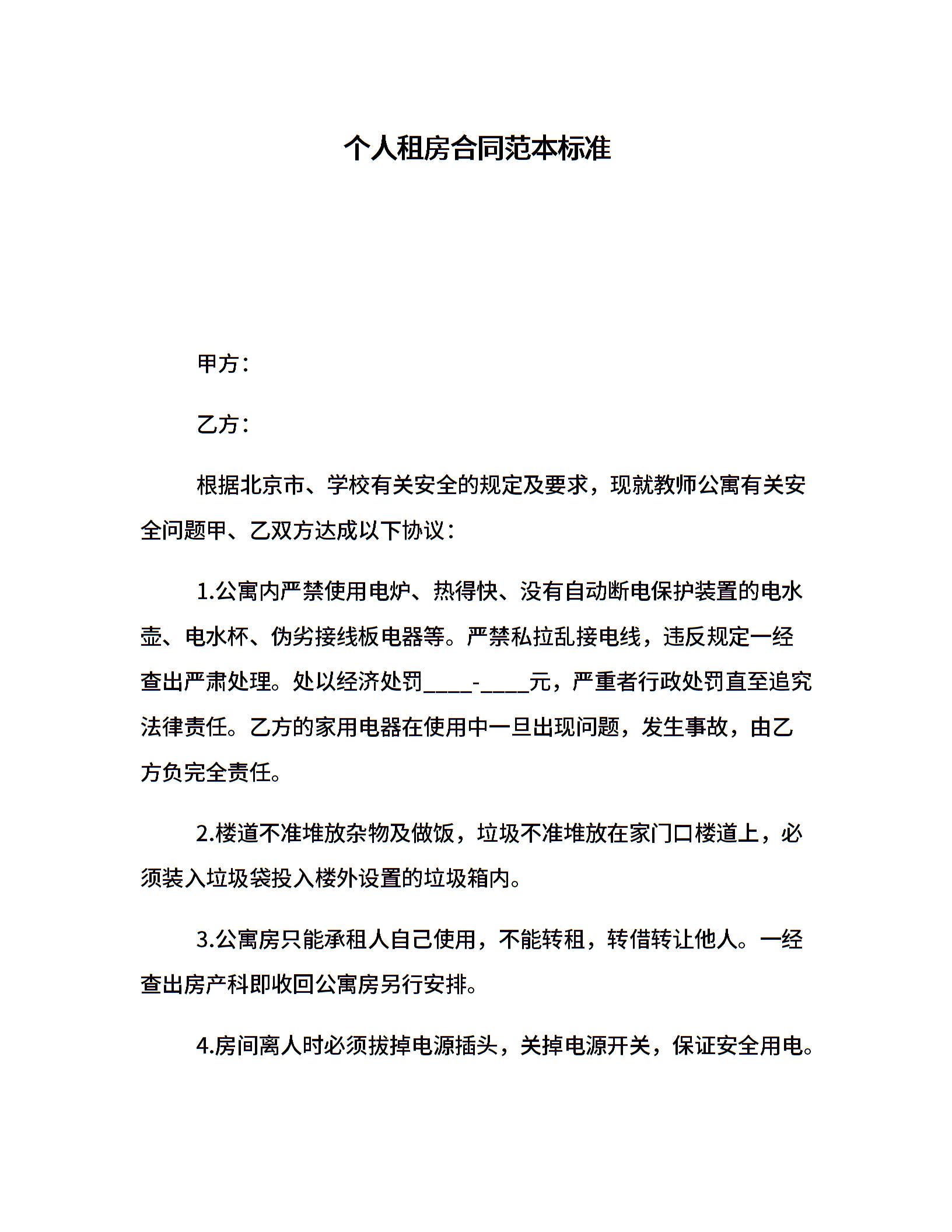 个人租房合同范本标准