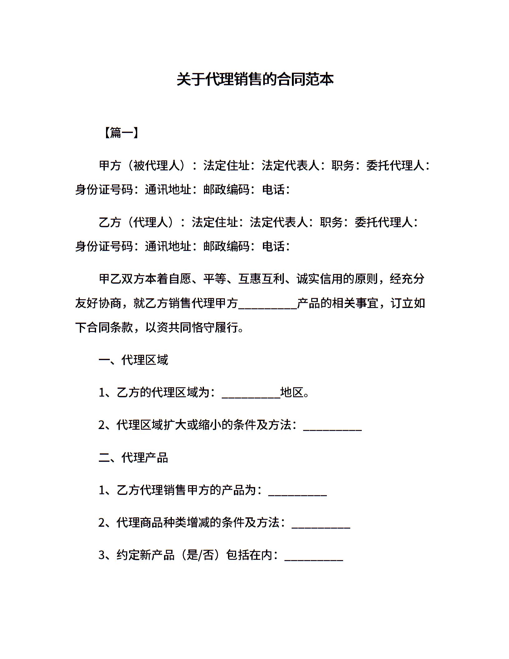 关于代理销售的合同范本