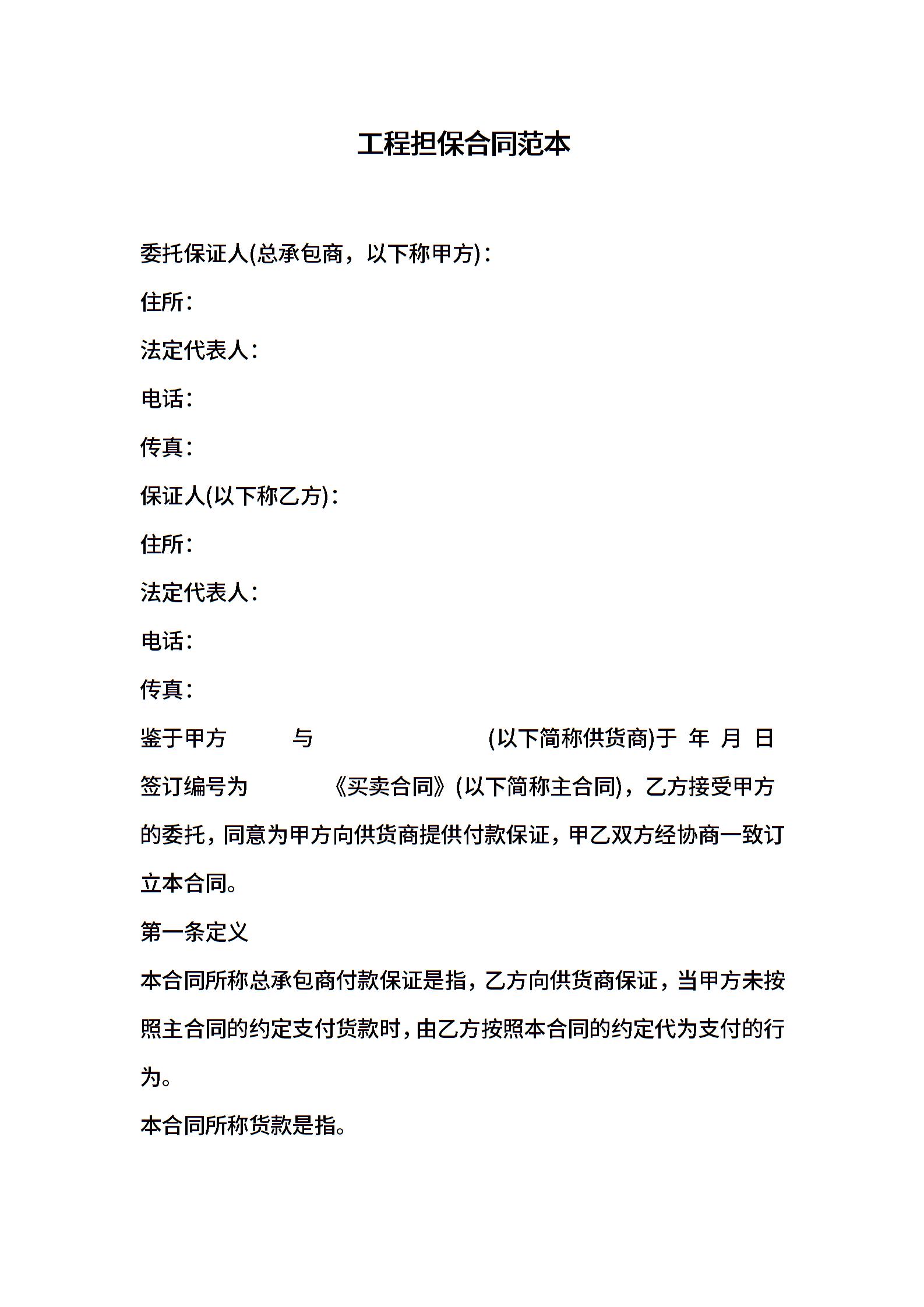 工程担保合同范本