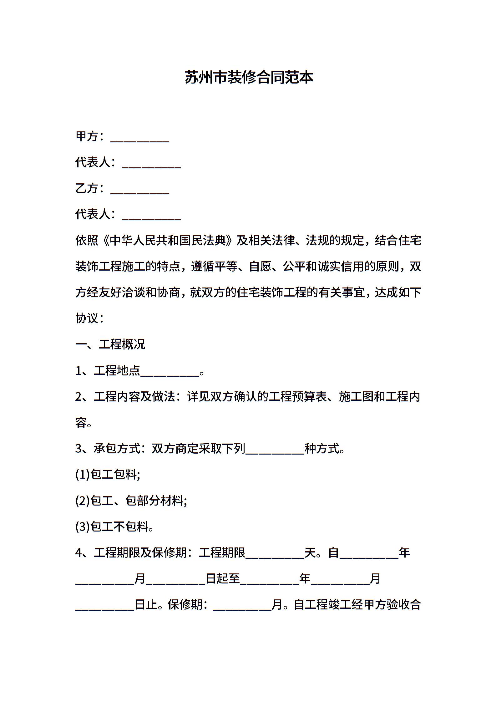 苏州市装修合同范本