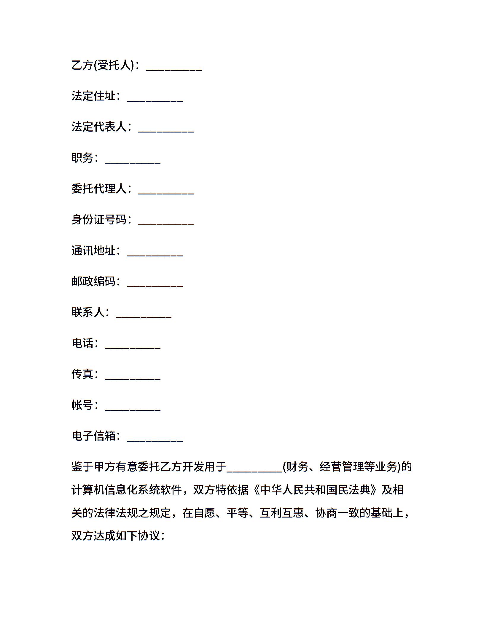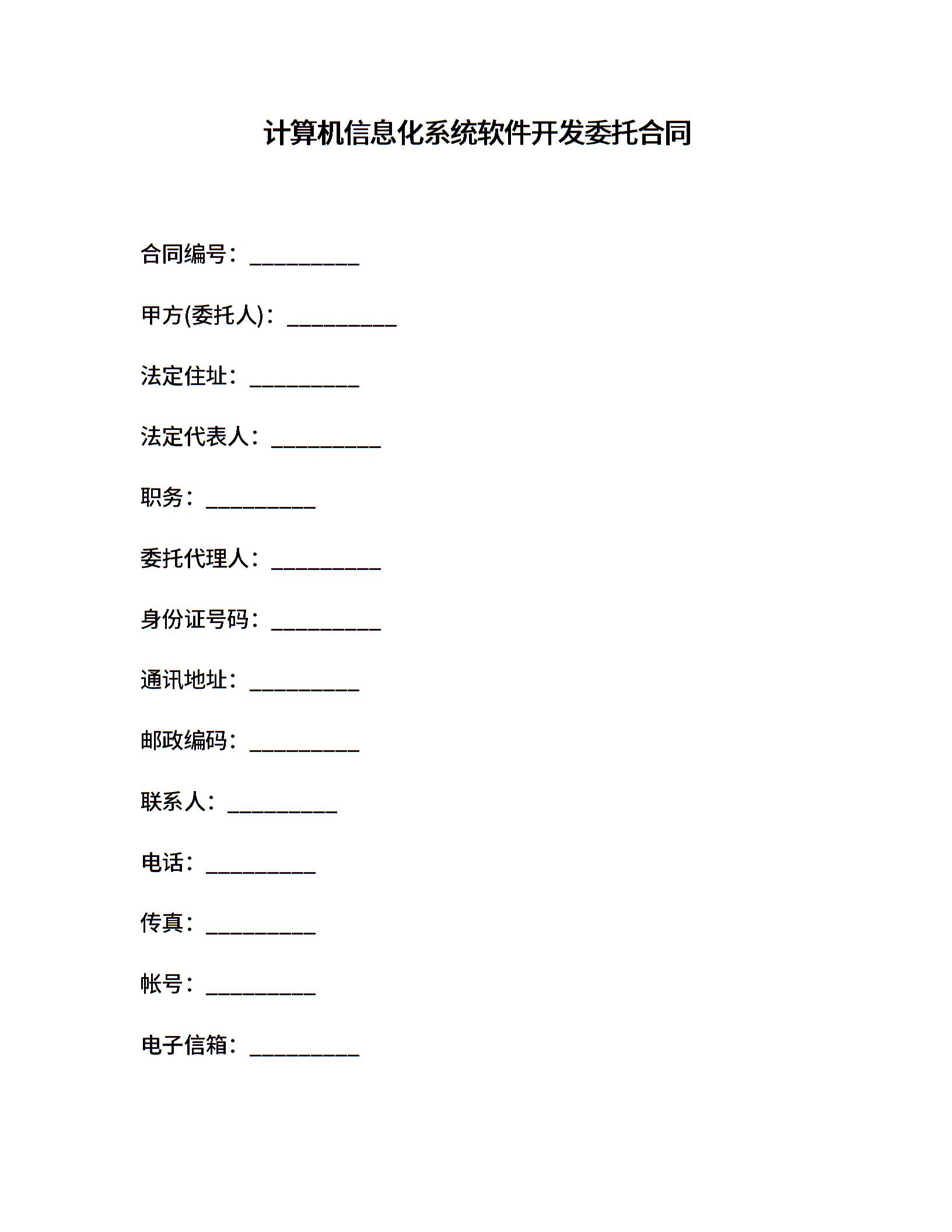 计算机信息化系统软件开发委托合同