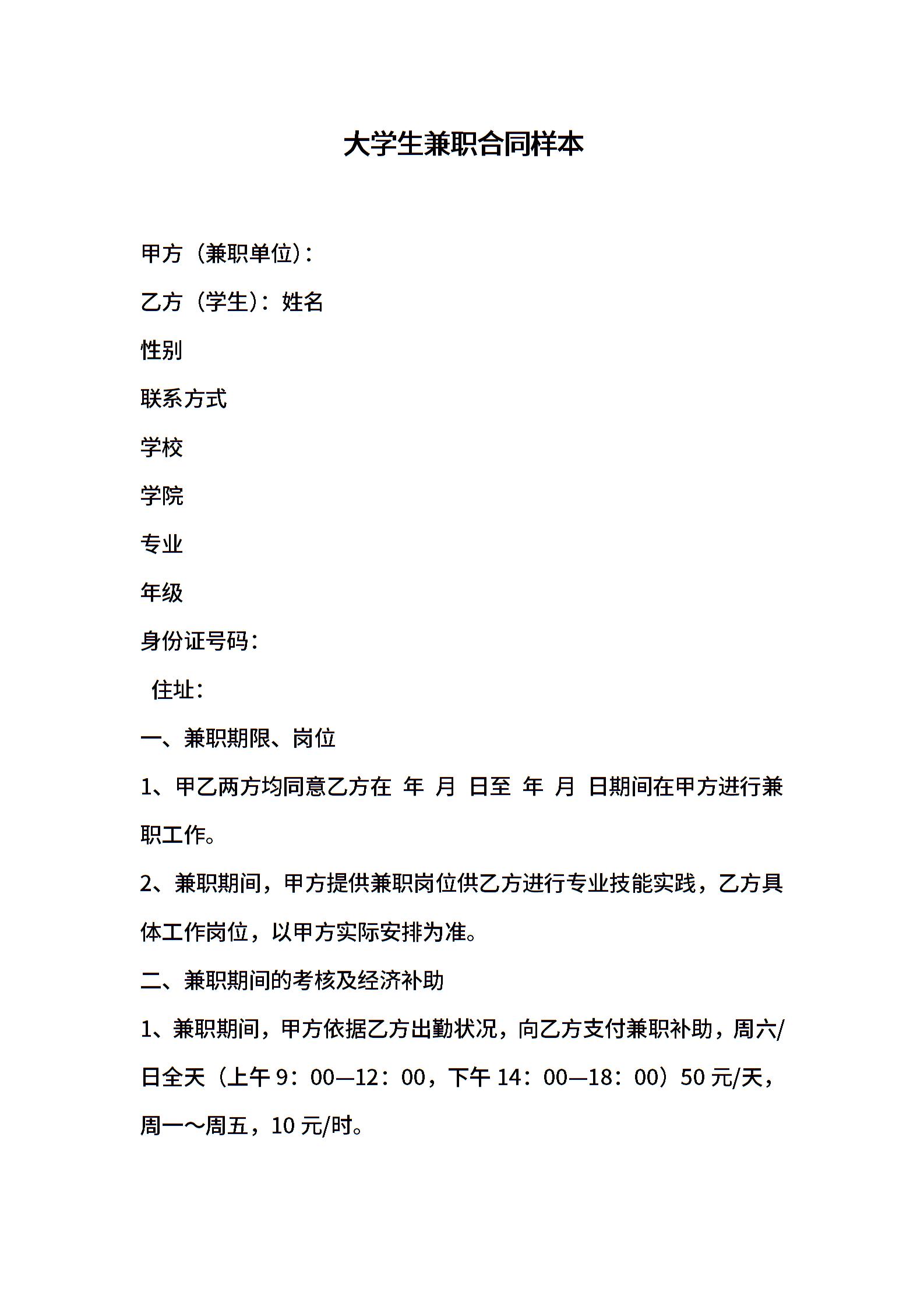 当前位置:量子办公 > 合同模板 > 兼职合同 >