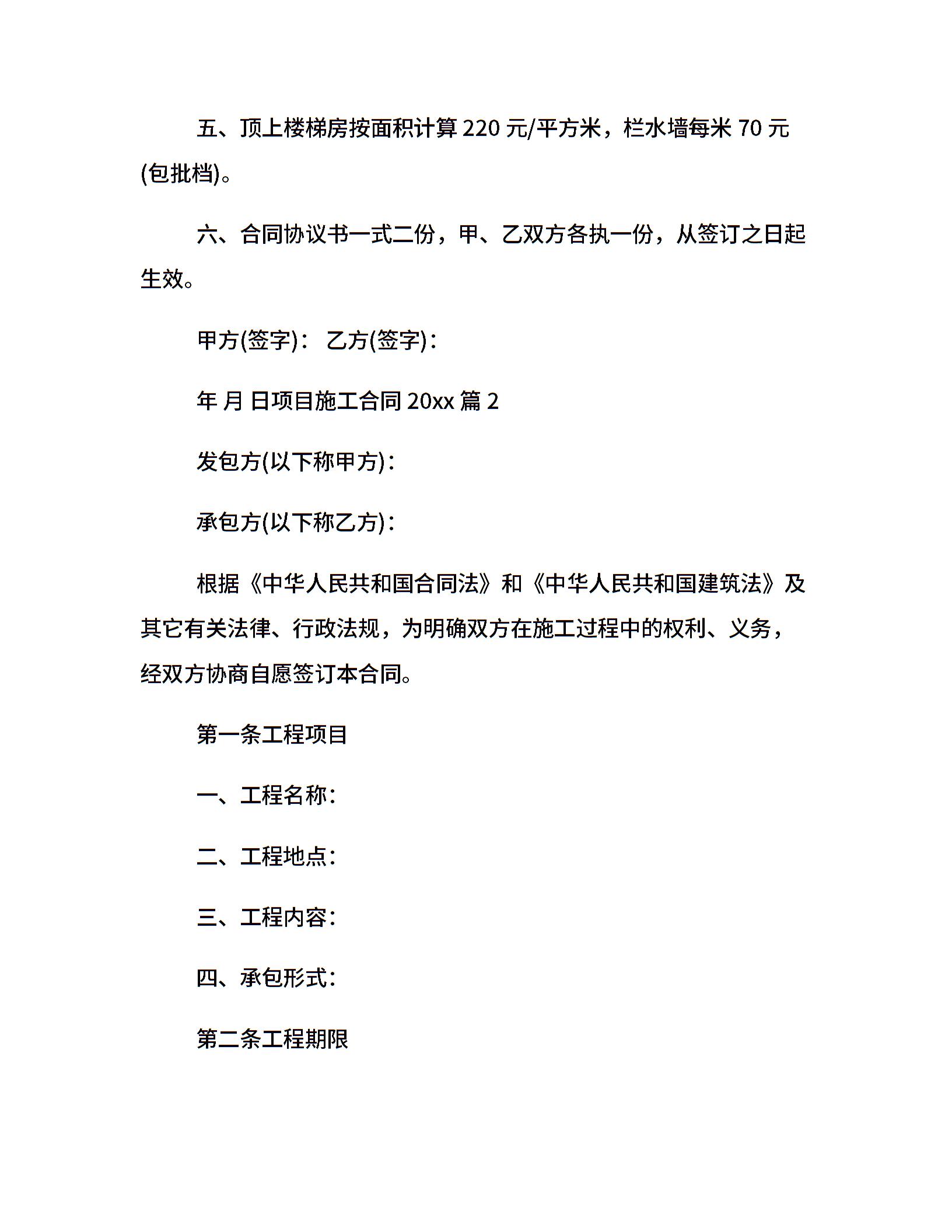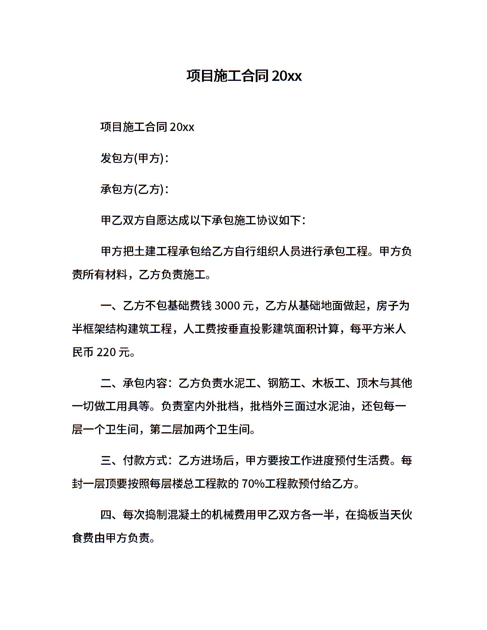 项目施工合同20xx