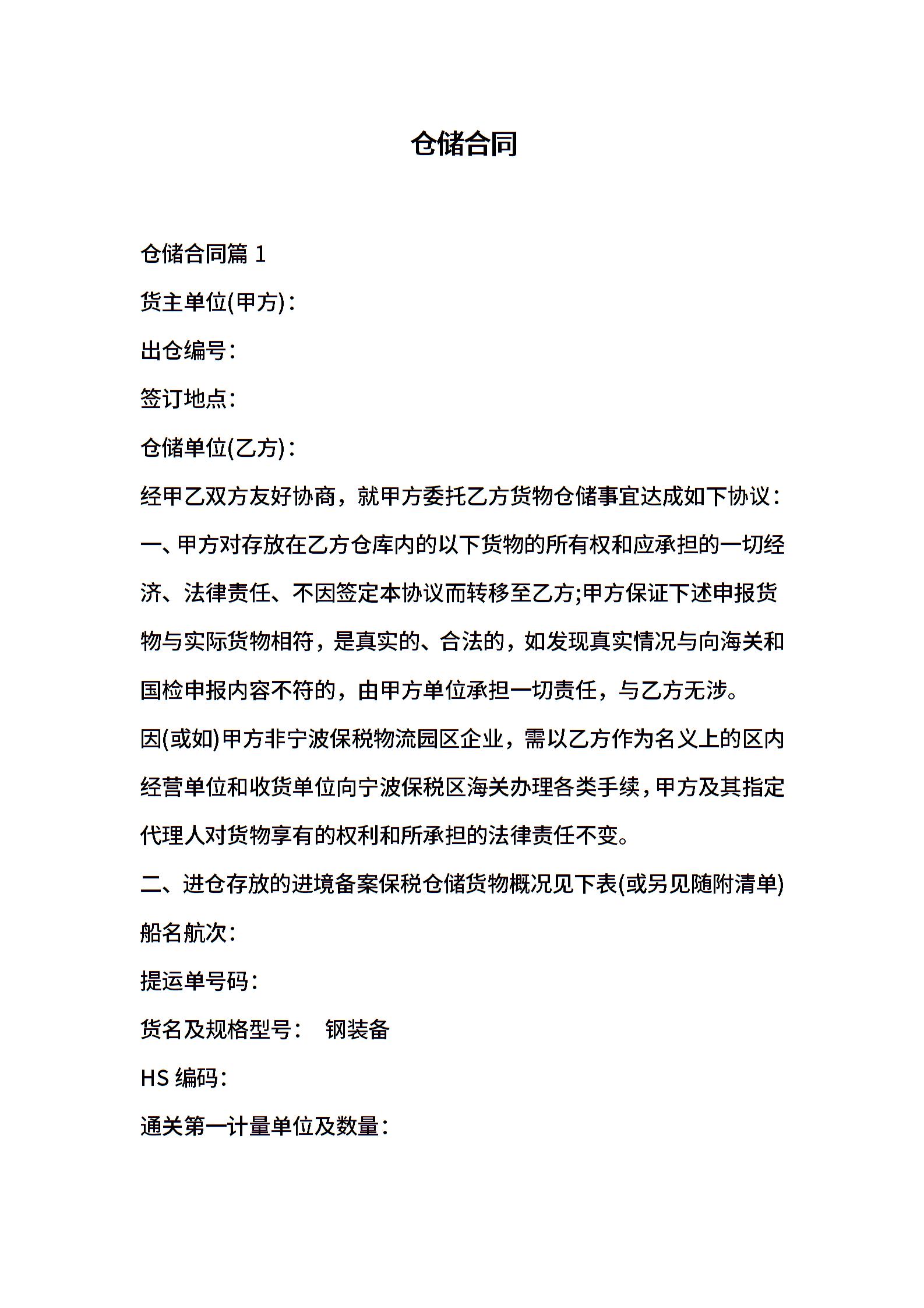 当前位置:量子办公 > 合同模板 > 仓储合同 >