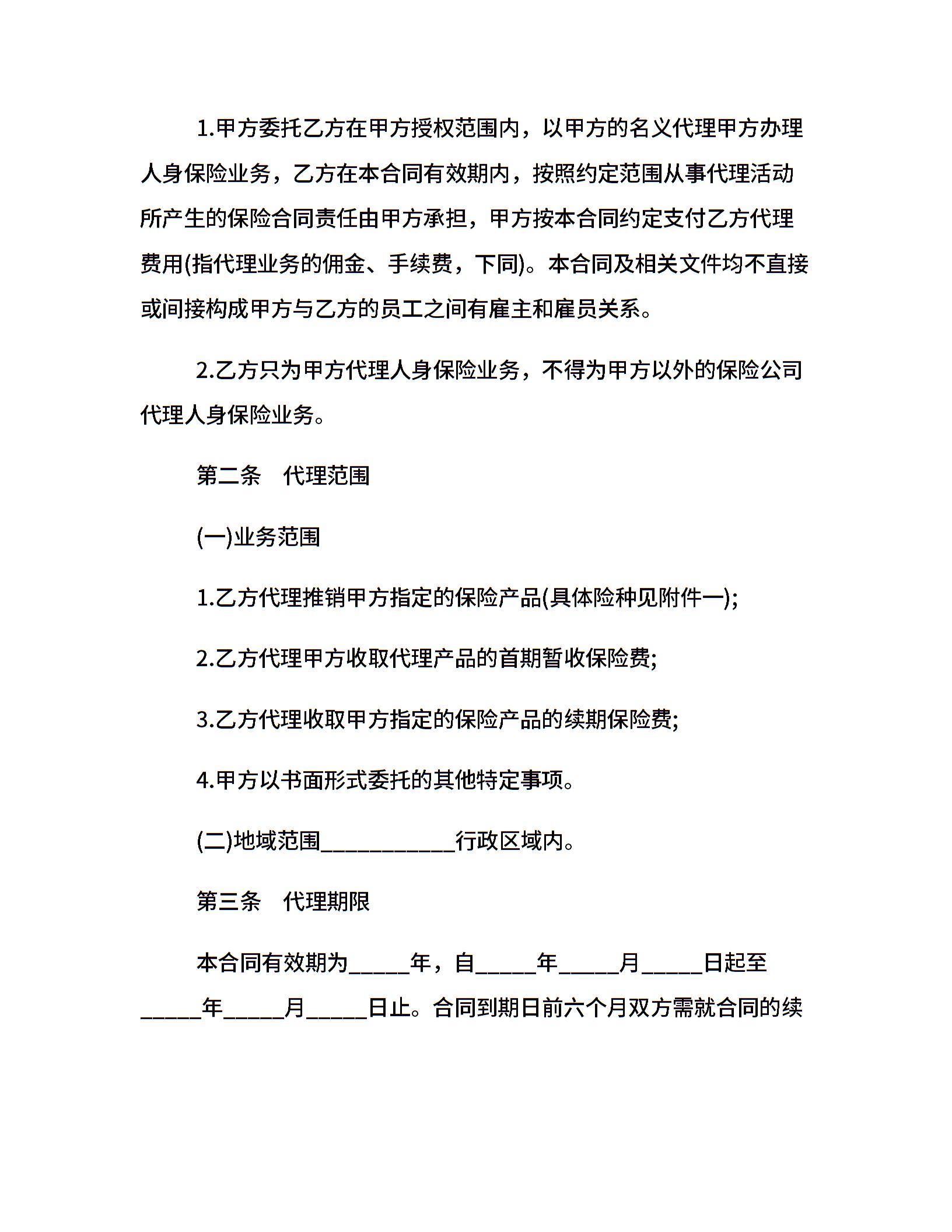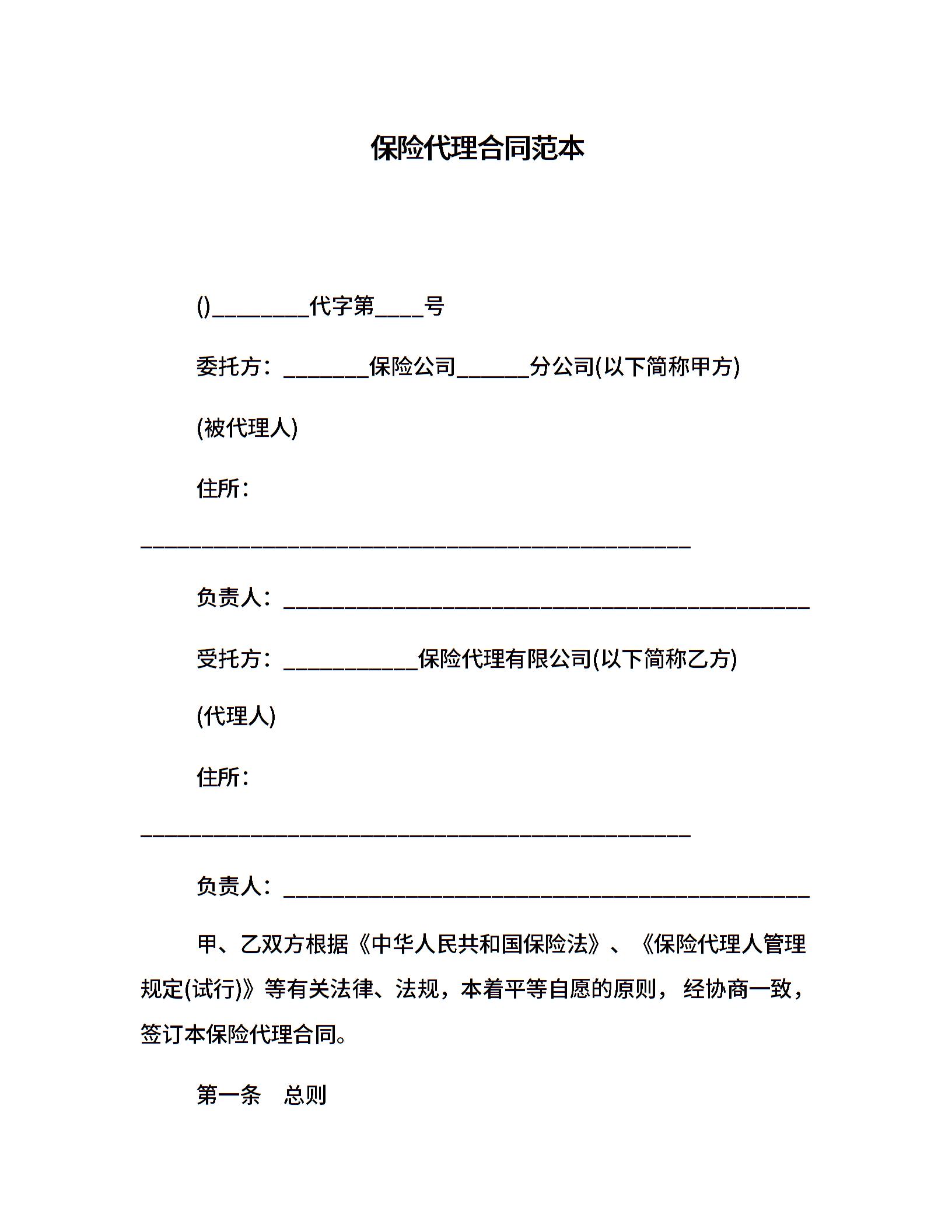 保险代理合同范本