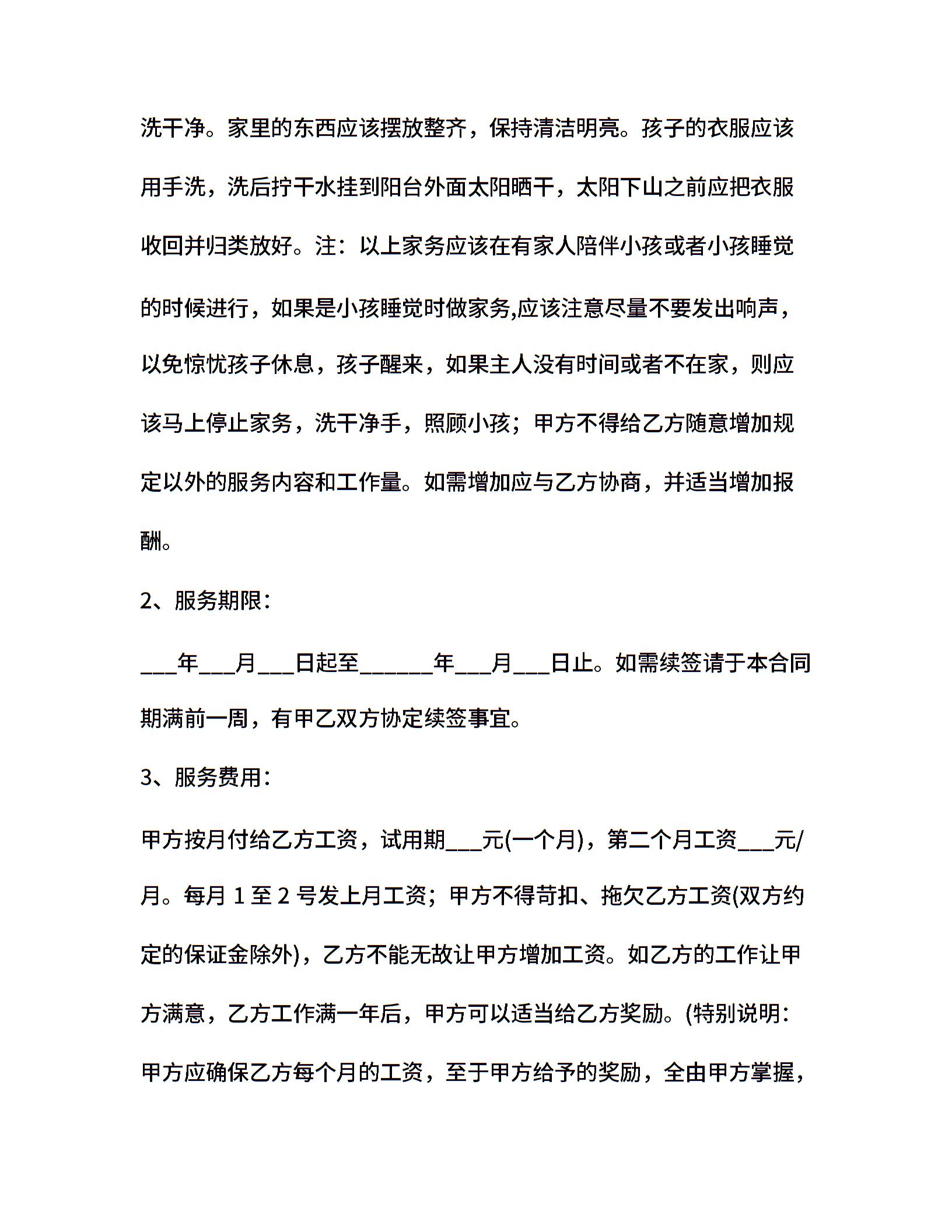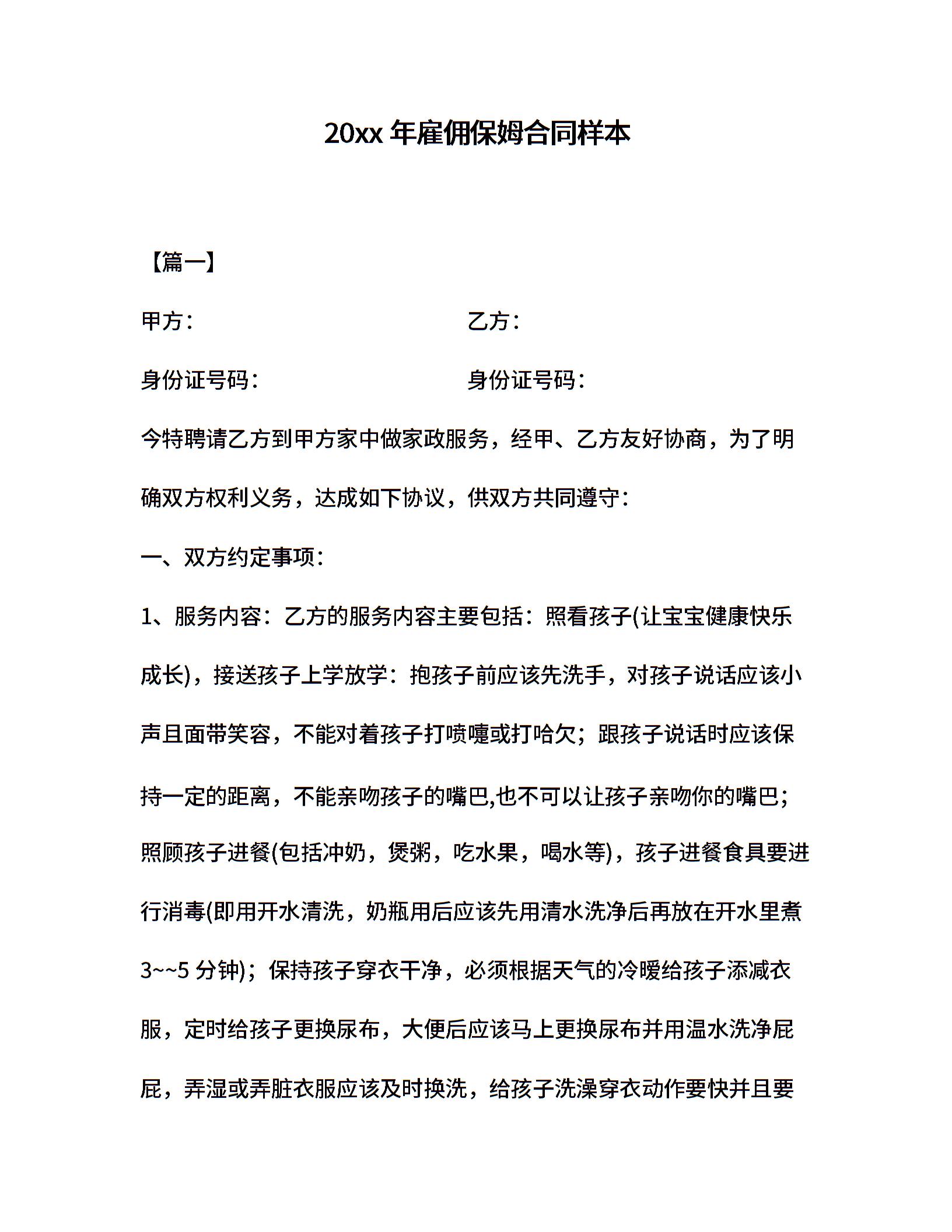 20xx年雇佣保姆合同样本