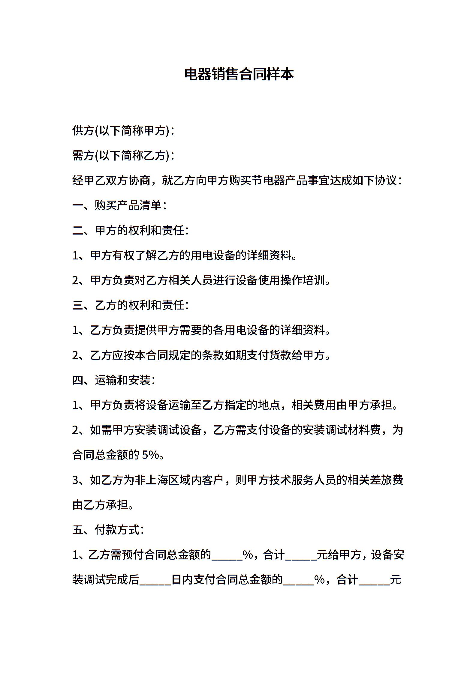 电器销售合同样本