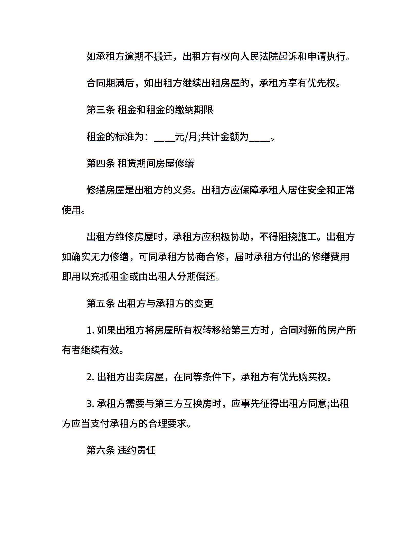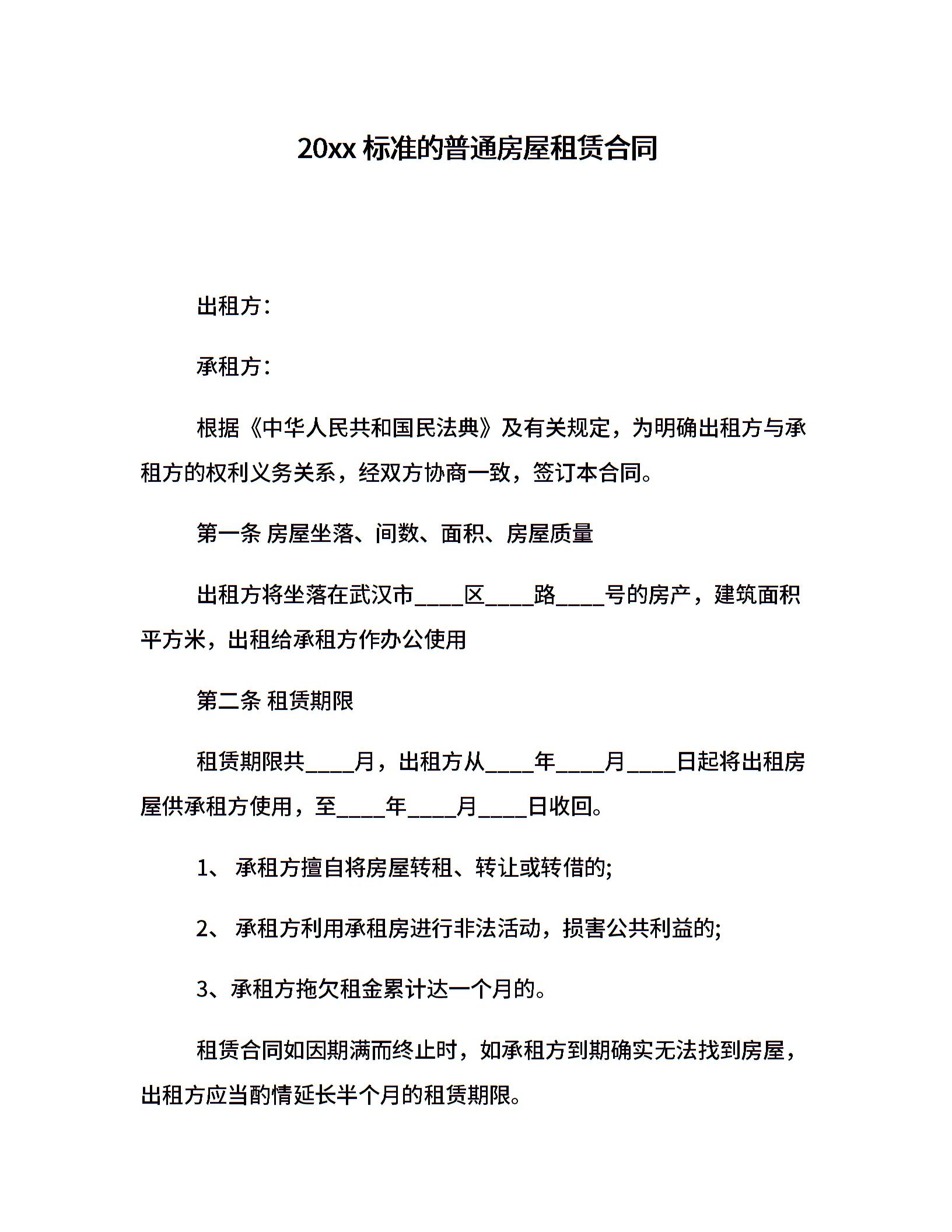20xx标准的普通房屋租赁合同