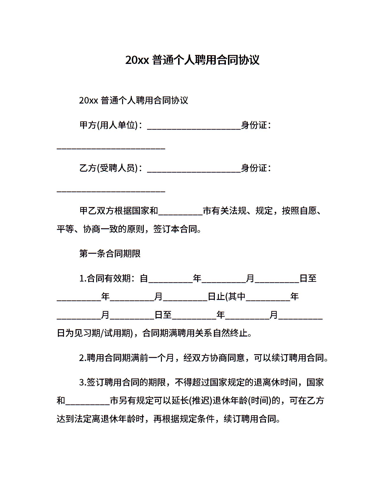 20xx普通个人聘用合同协议