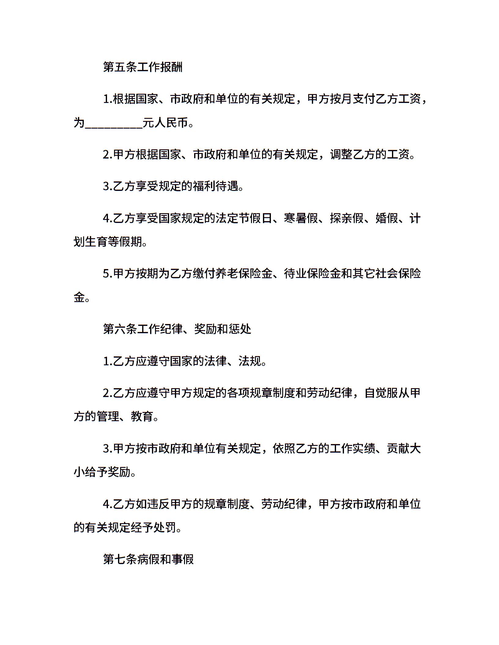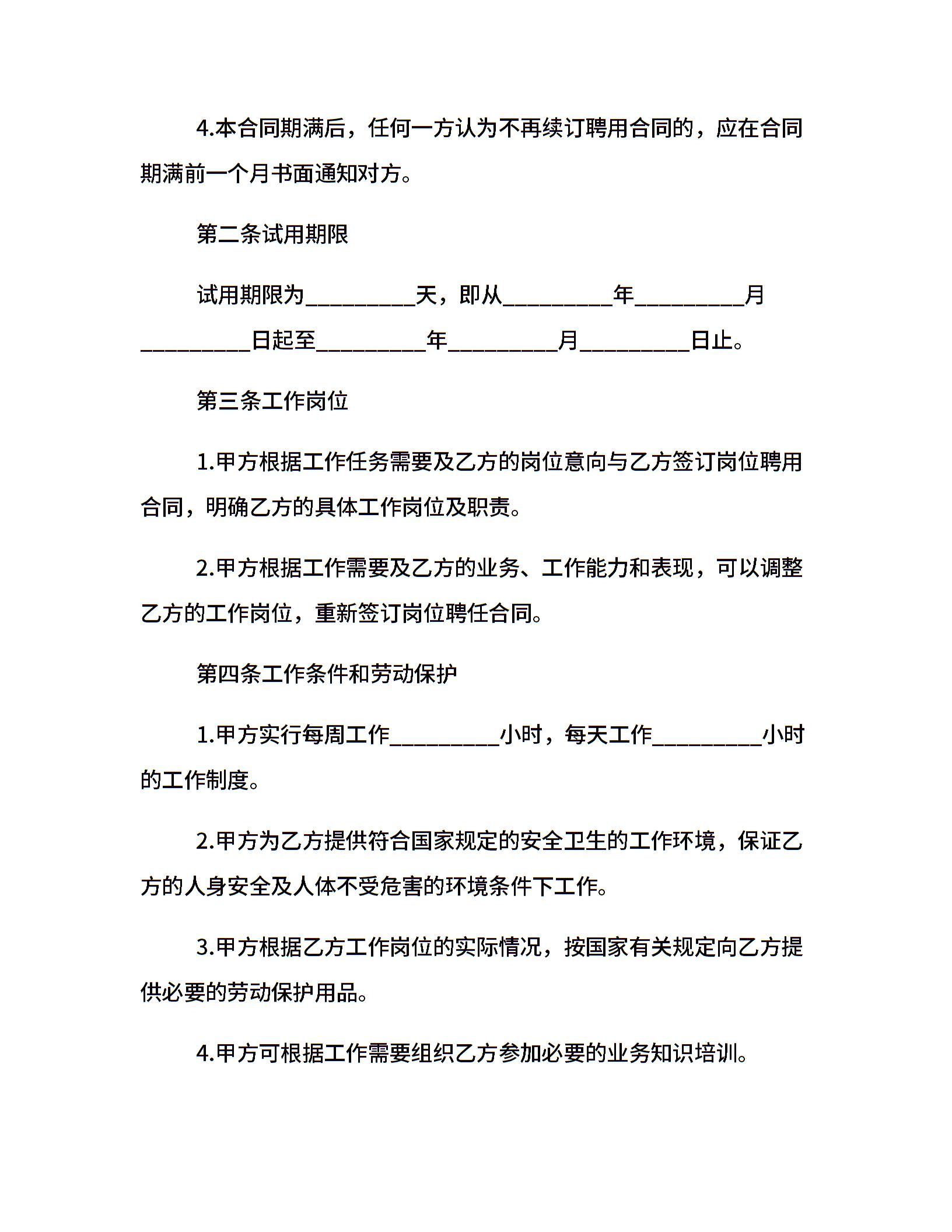 • 分类 聘用合同