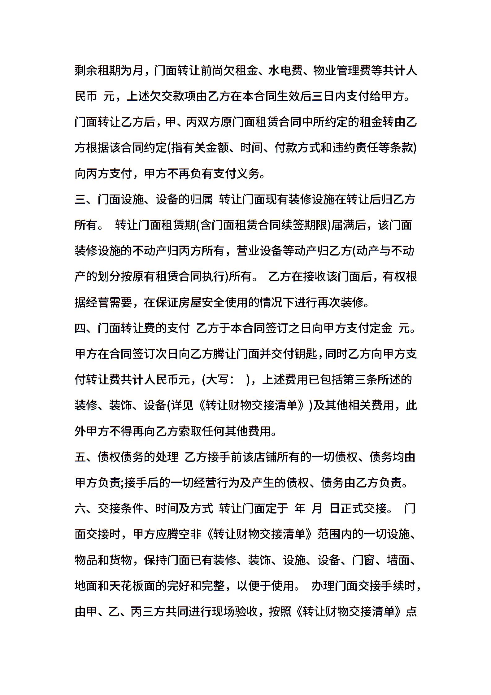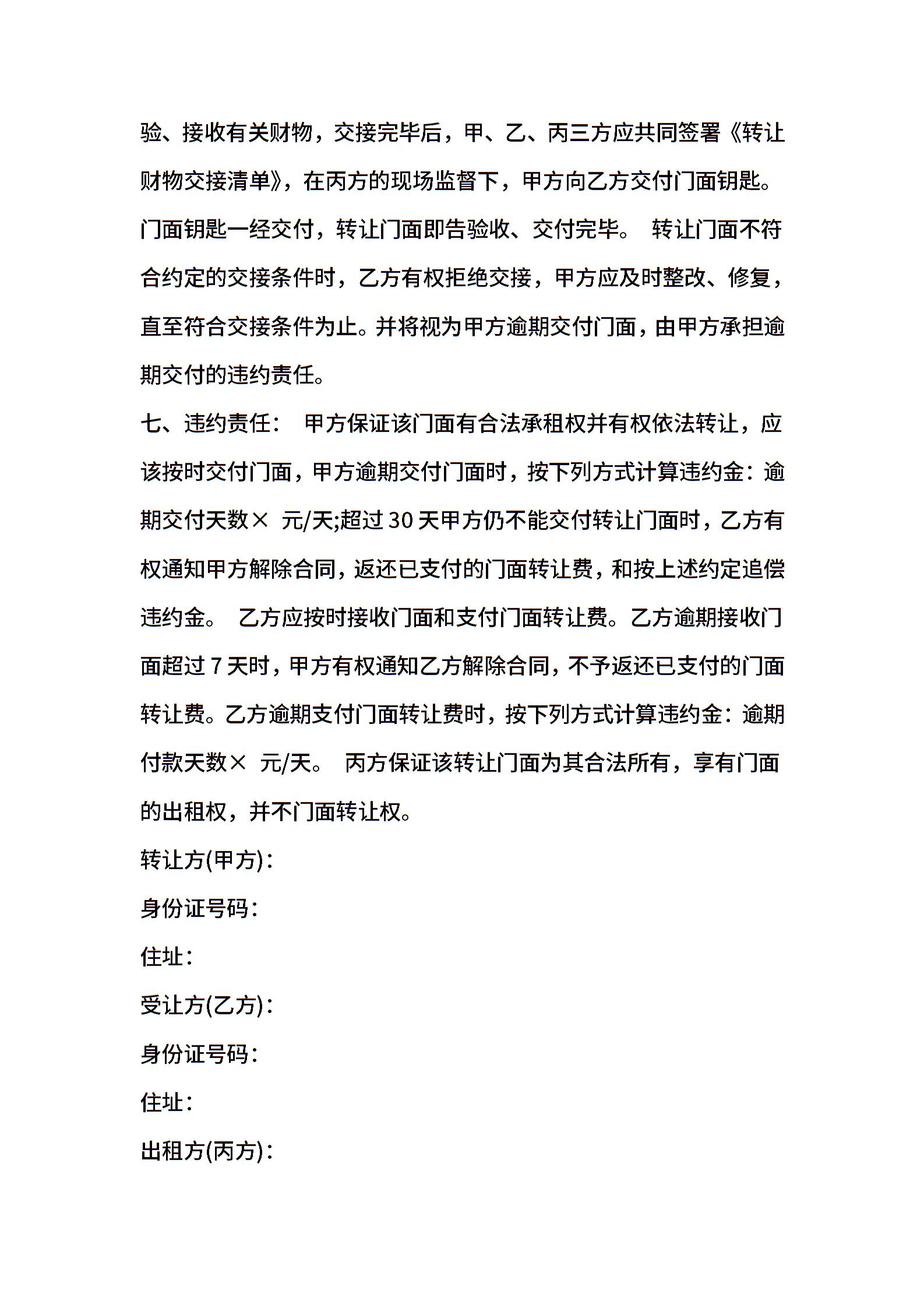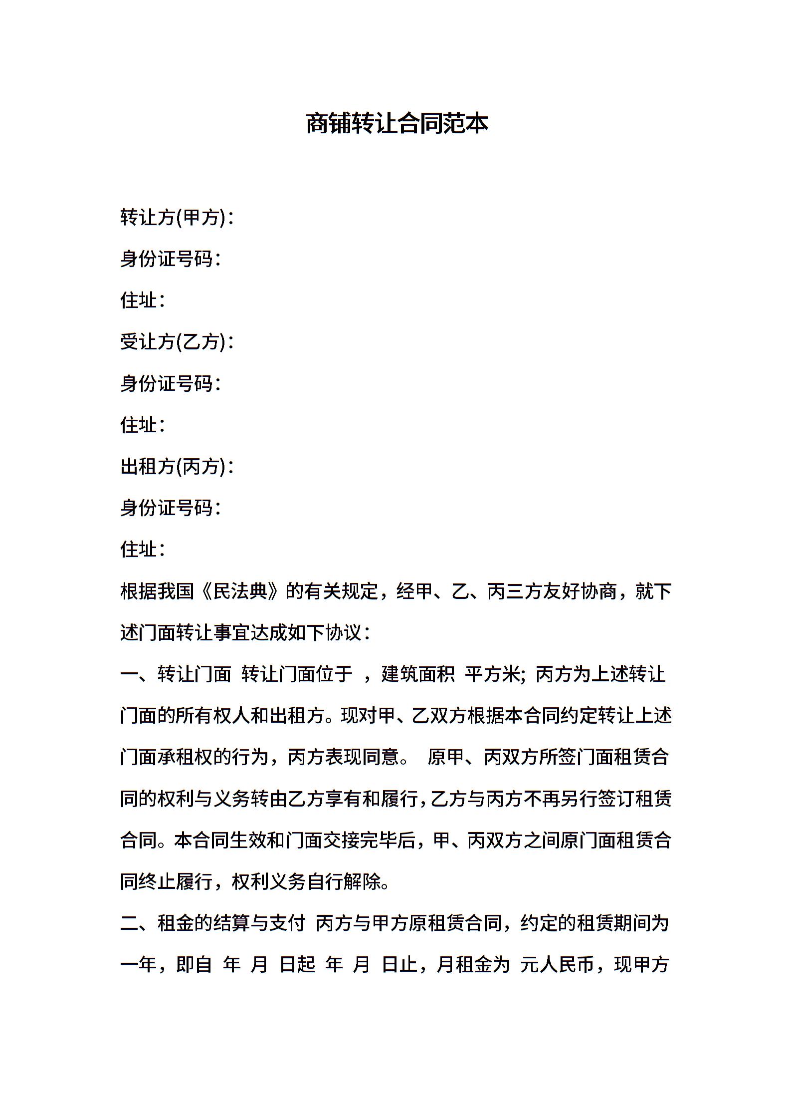 商铺转让合同范本