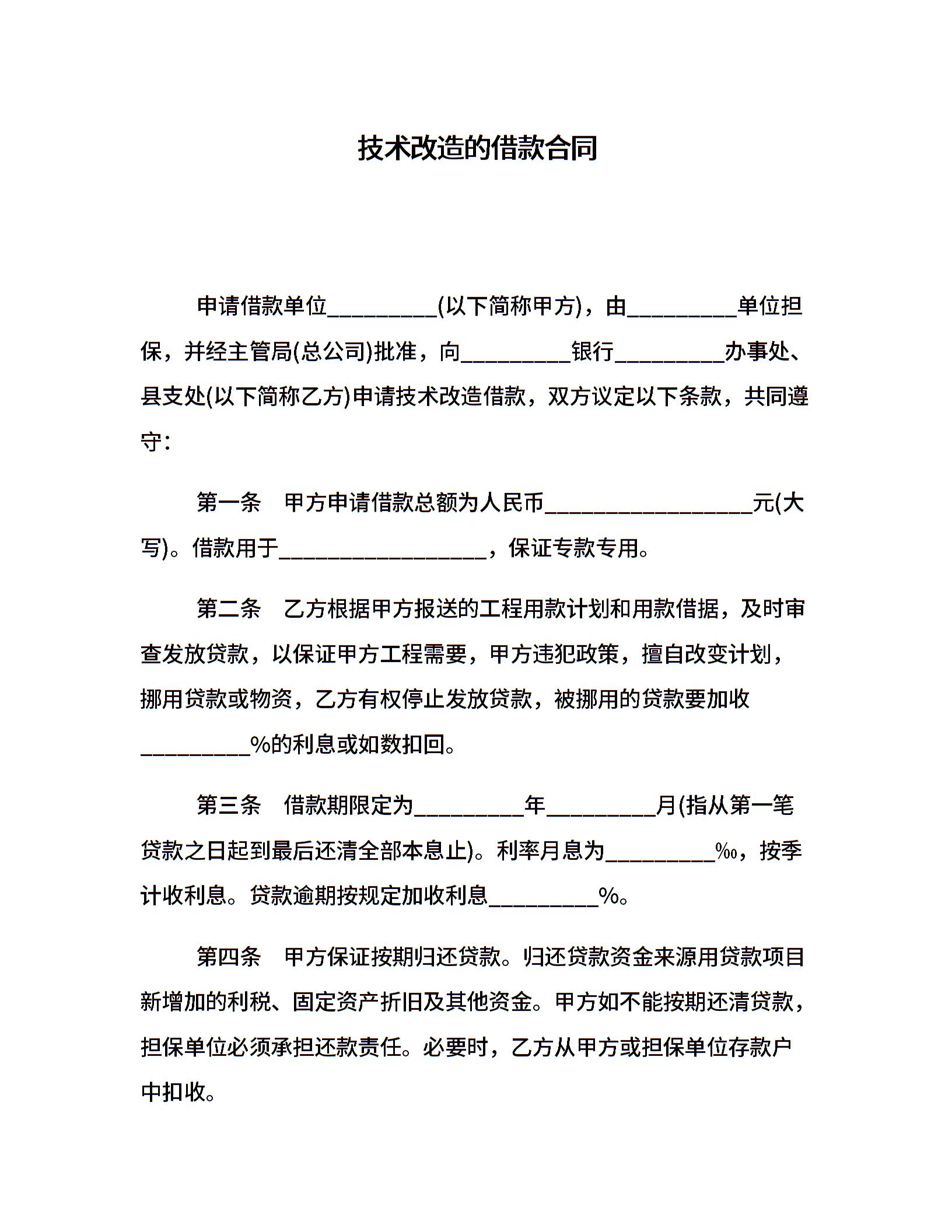 技术改造的借款合同