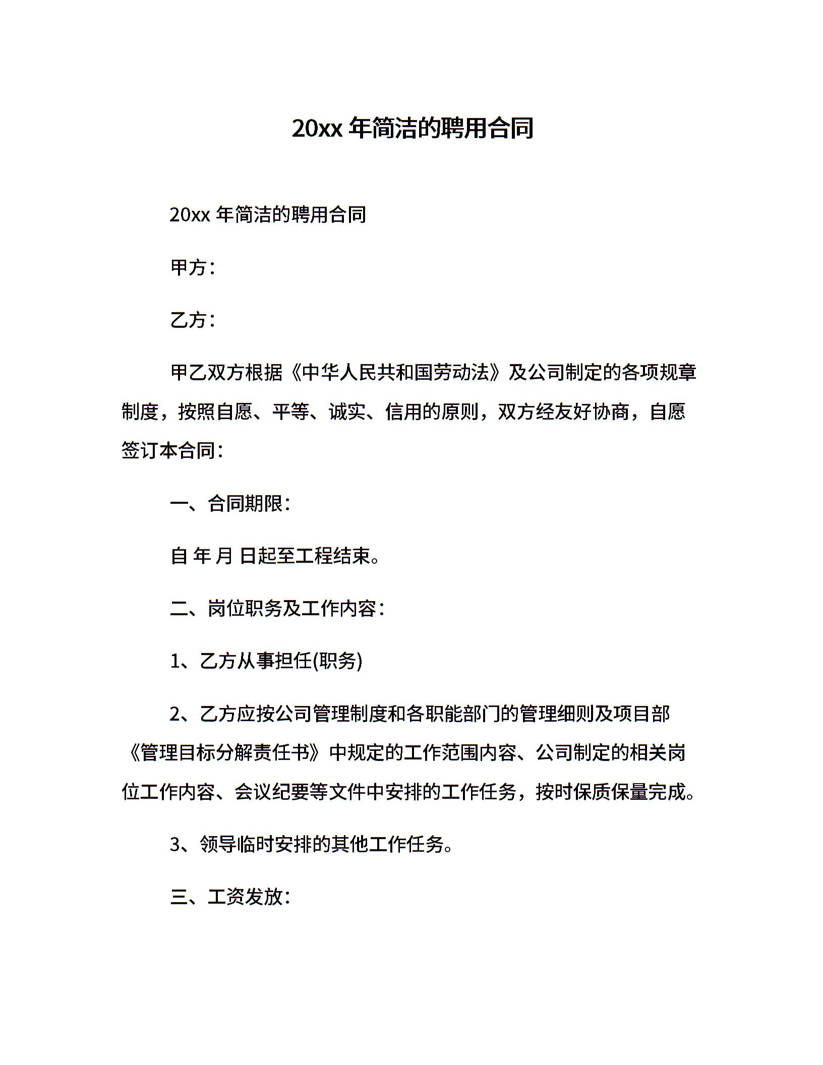 20xx年简洁的聘用合同