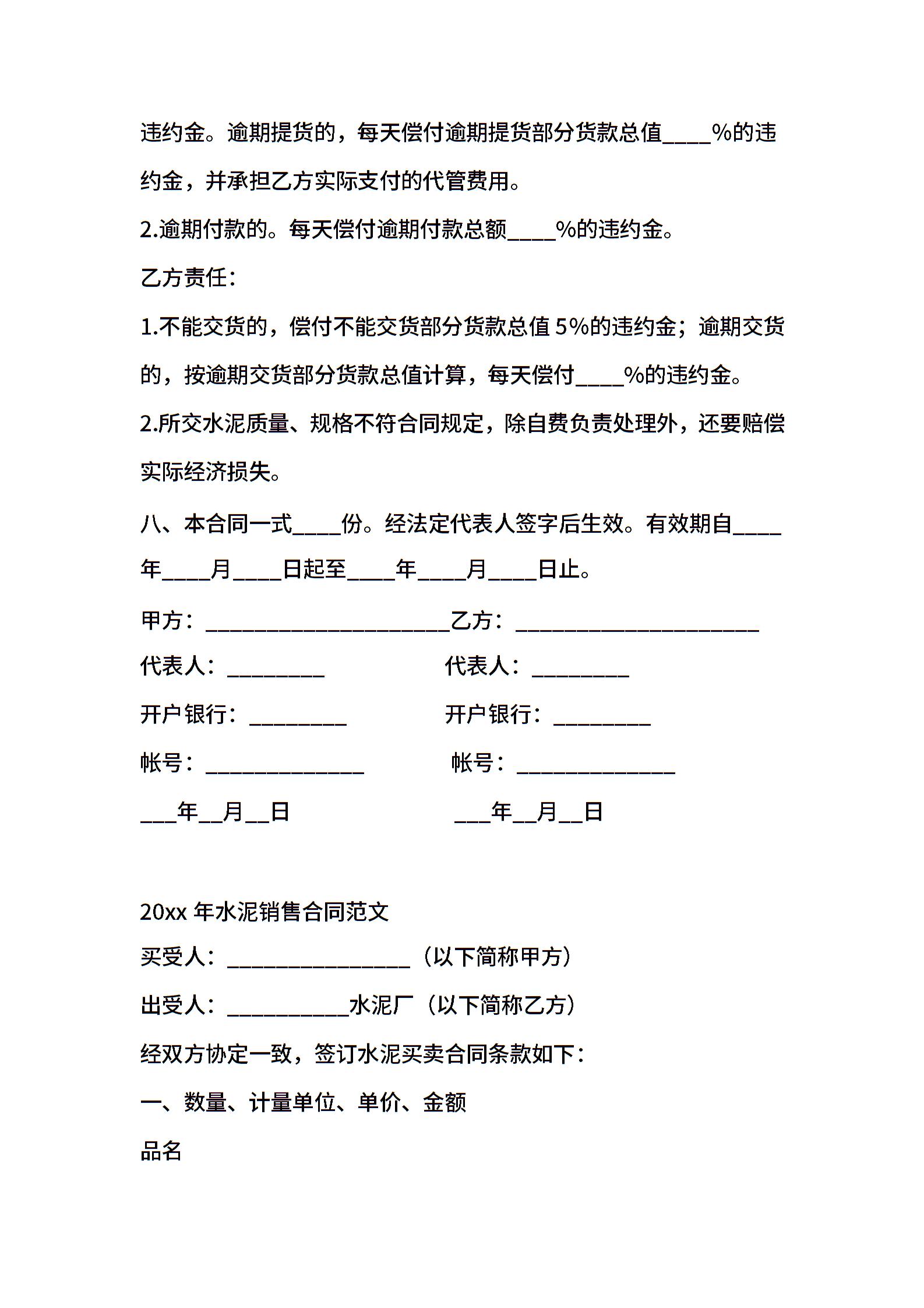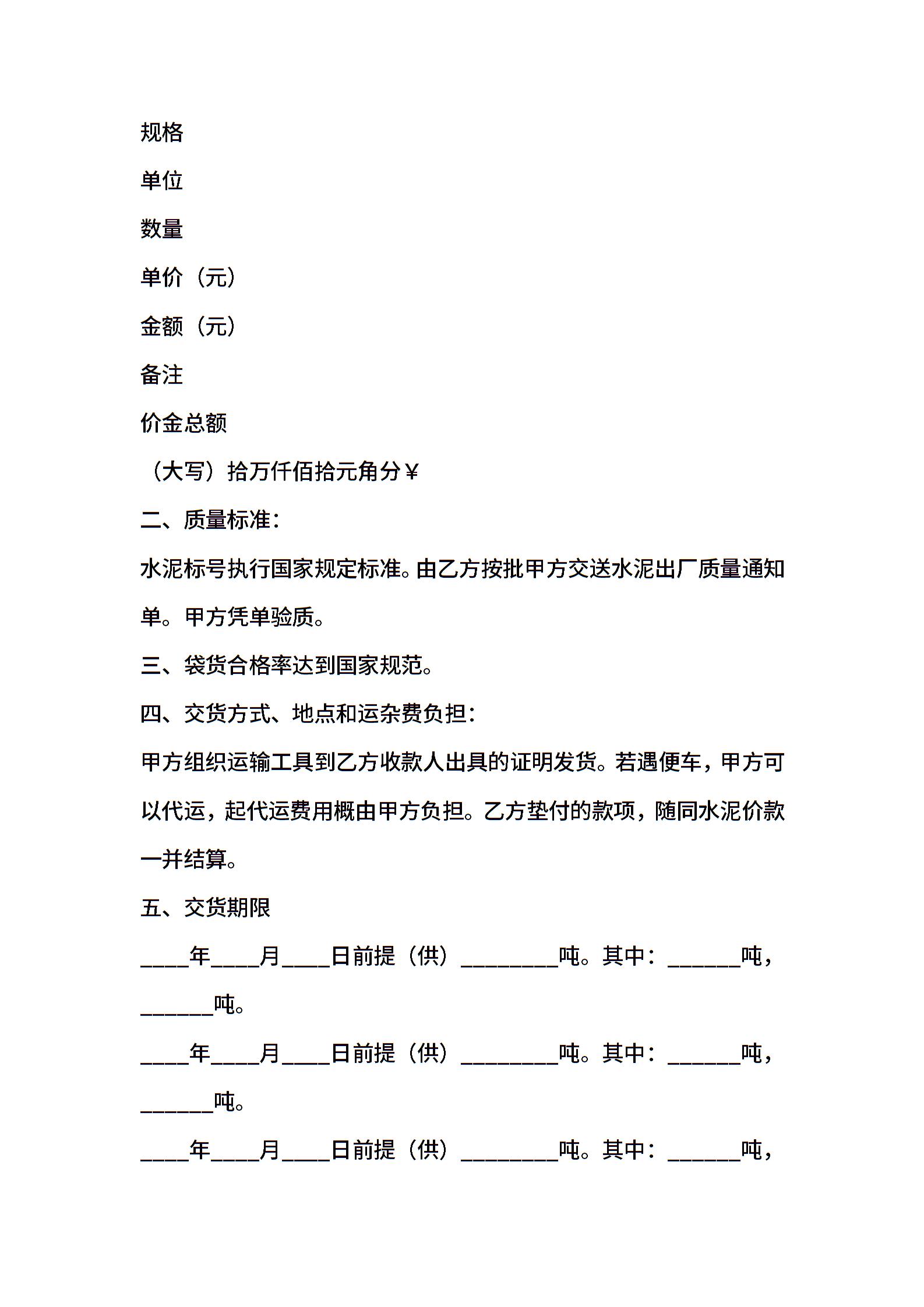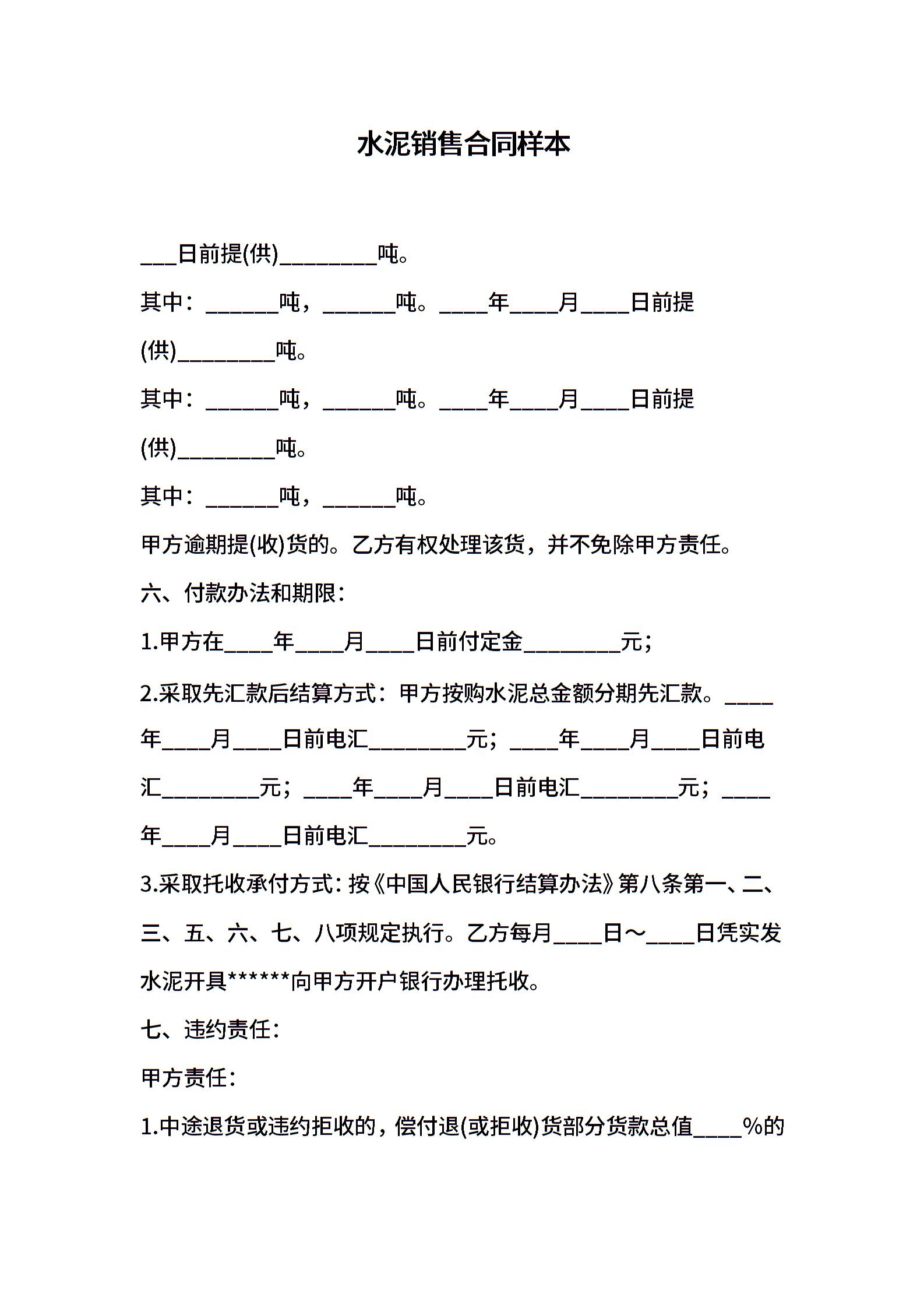 水泥销售合同样本